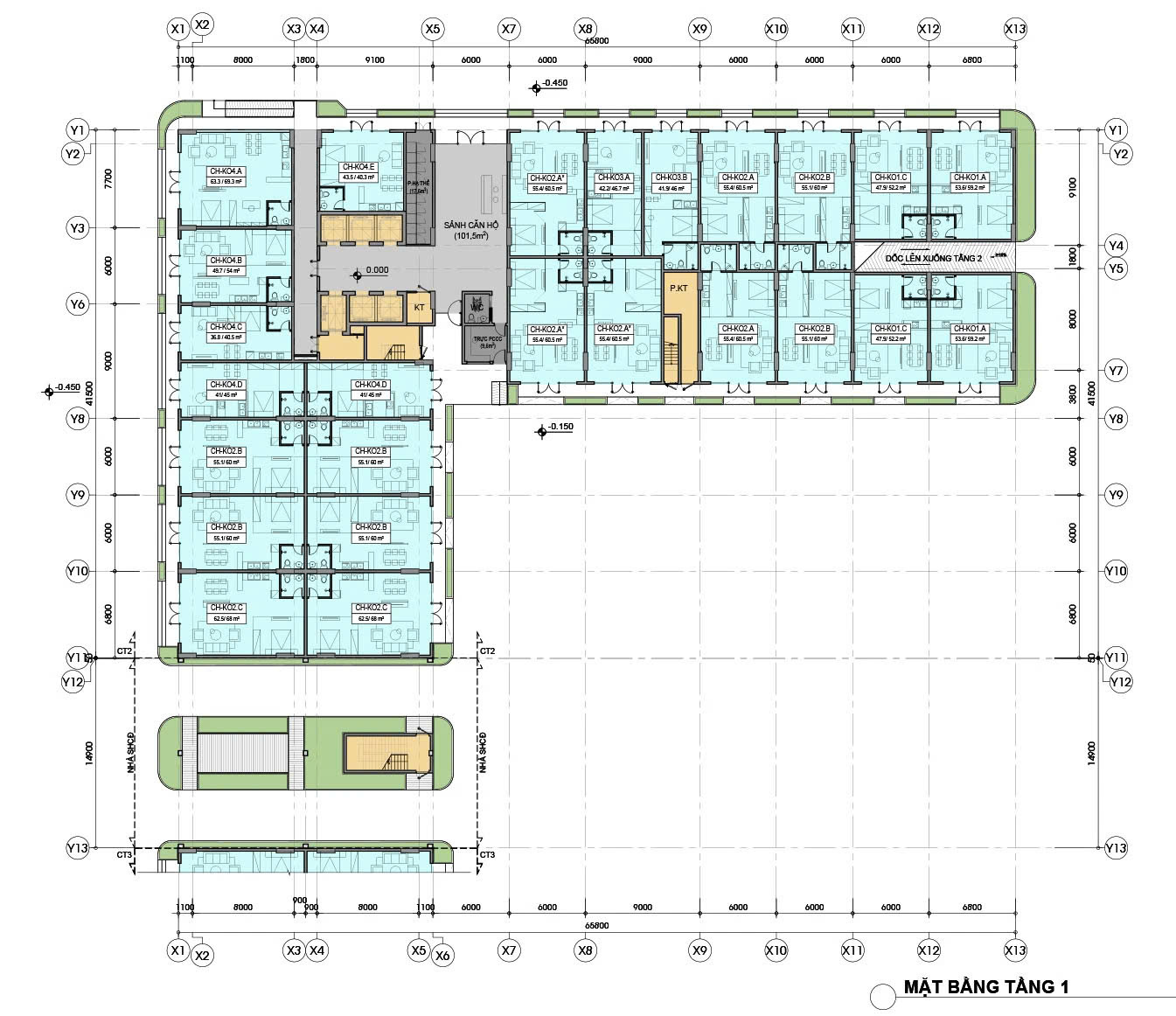 • Diện tích: từ 27,6m² đến 69,8m²