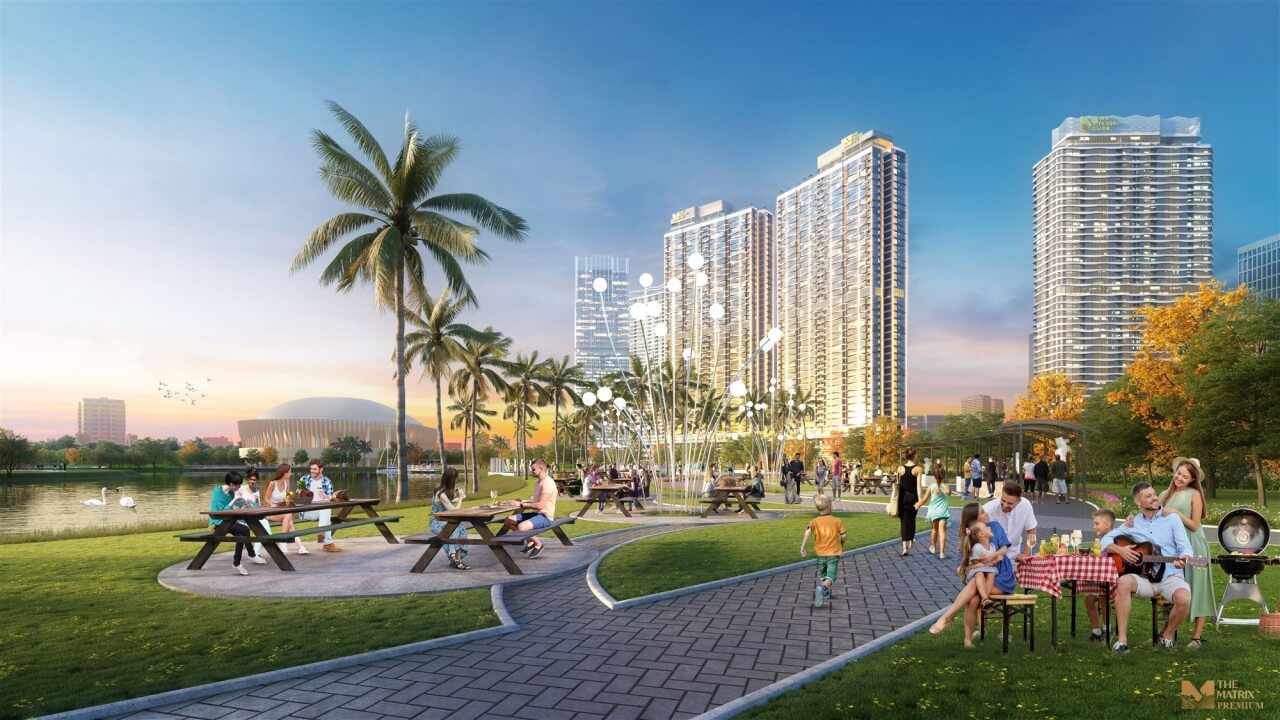 • Ngoài ra, dự án còn sở hữu “lá phổi xanh” đặc biệt - khu công viên quy mô hơn 14ha nằm ngay đối diện dự án. Đây là lợi thế vượt trội giúp nâng cao giá trị căn hộ tại The Matrix Premium. Với tầm nhìn ôm trọn công viên hồ điều hòa, cư dân The Matrix One được hưởng đặc quyền vô cùng đẳng cấp không khác gì khu nghỉ dưỡng trong một không gian xanh tươi mát.