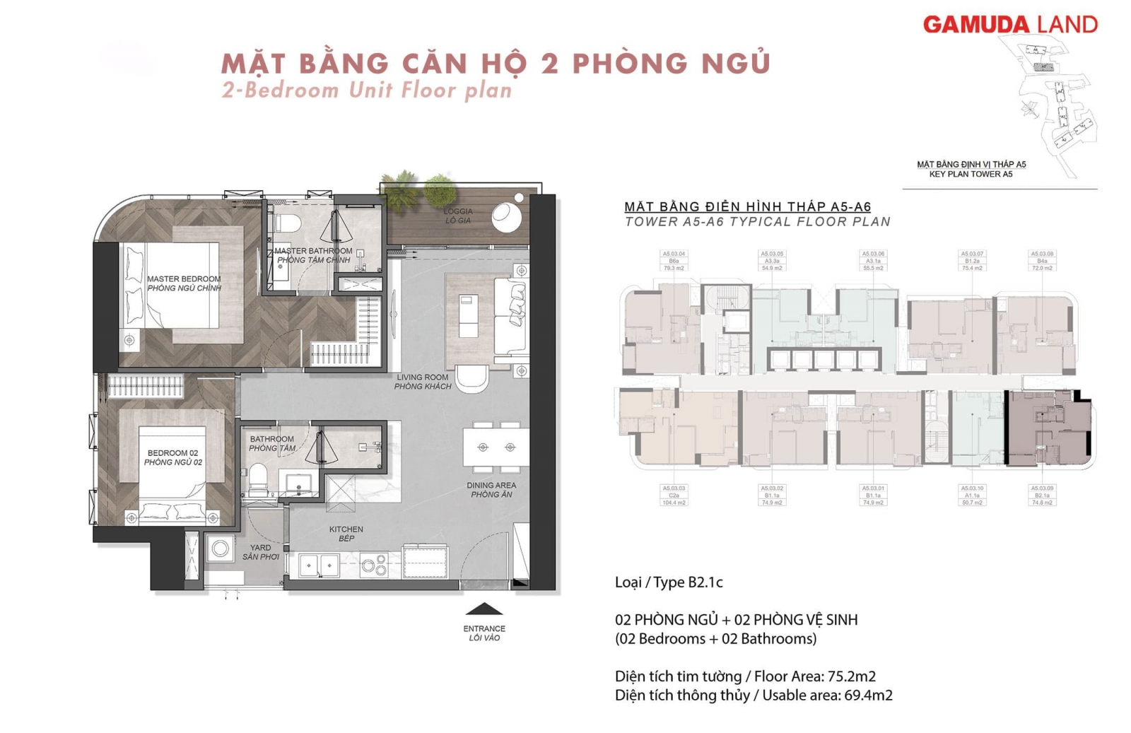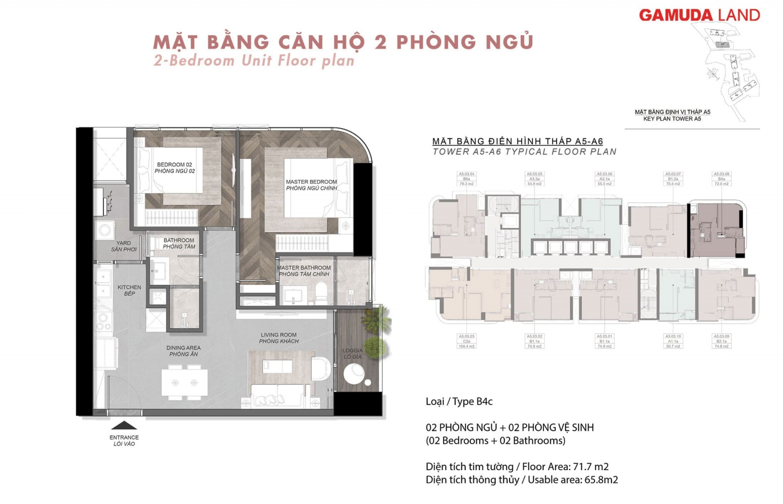 - Căn 2PN: 71.7m2 – 80.0m2.