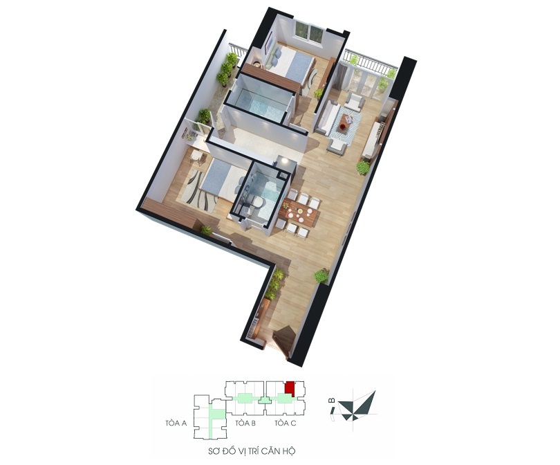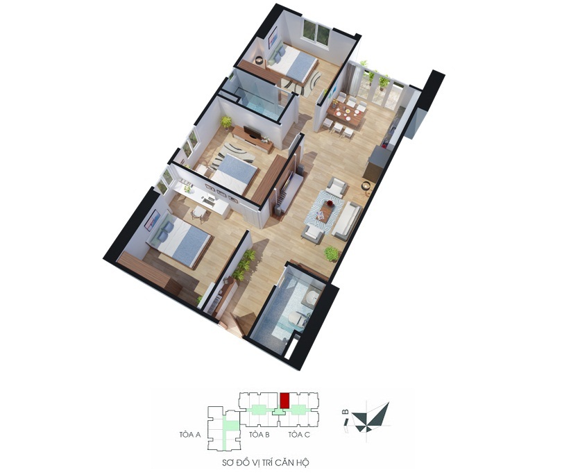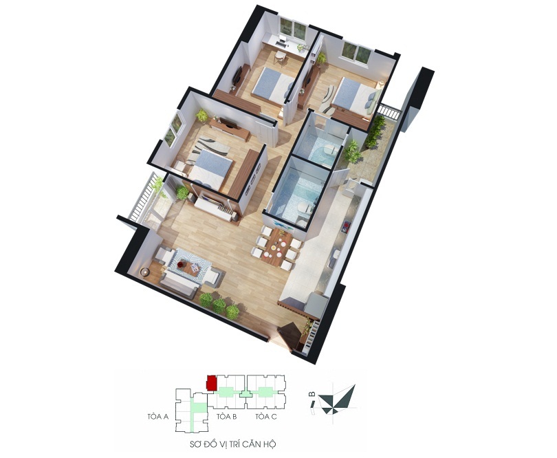 • Quy mô: 2 Tòa cao 28 tầng, 1 tòa cao 33 tầng và 2 tầng hầm liên khu.