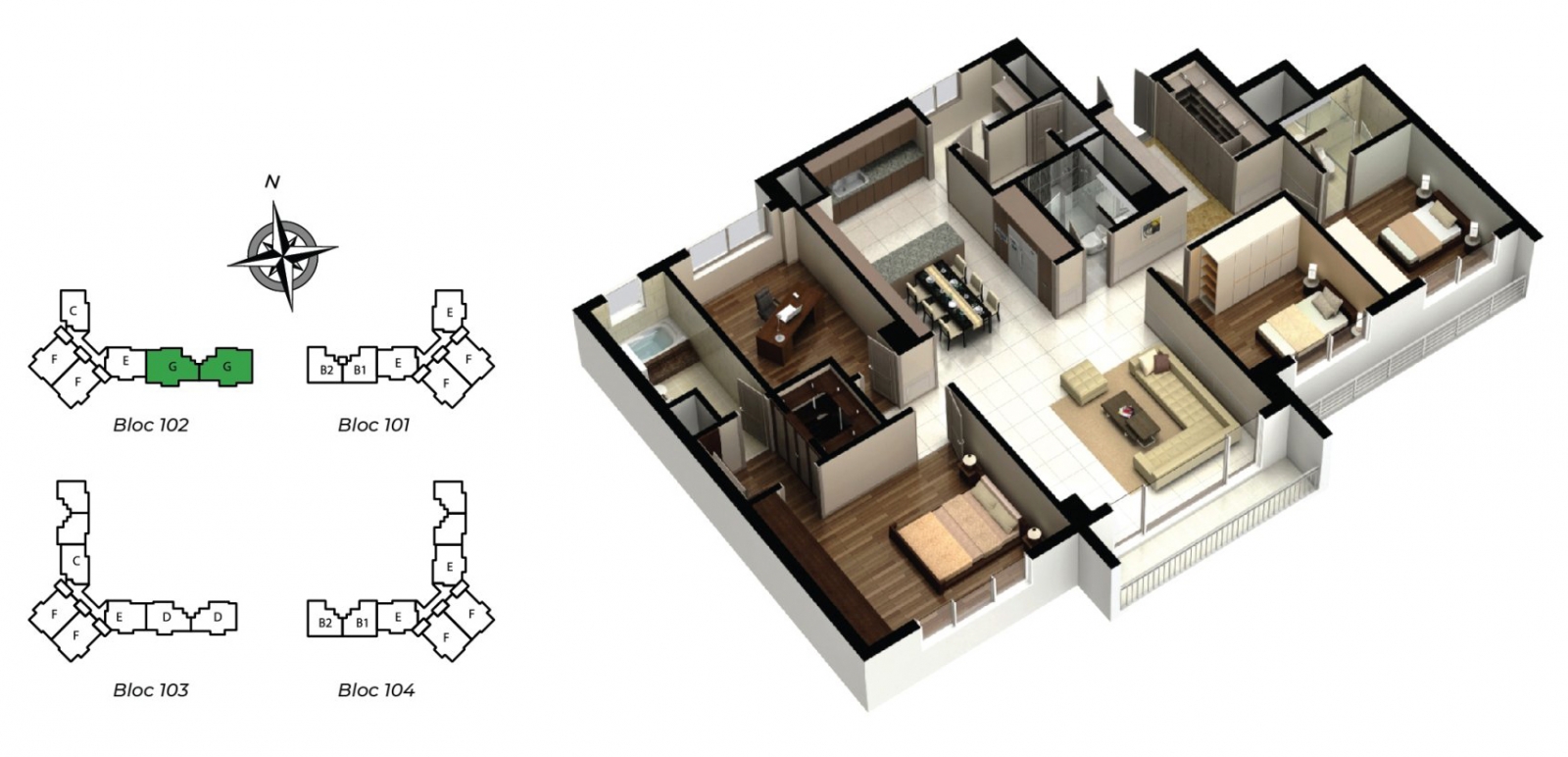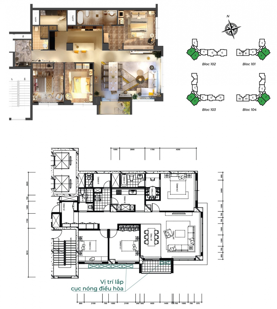 • Các loại diện tích căn hộ: 105 – 122 – 144 m2