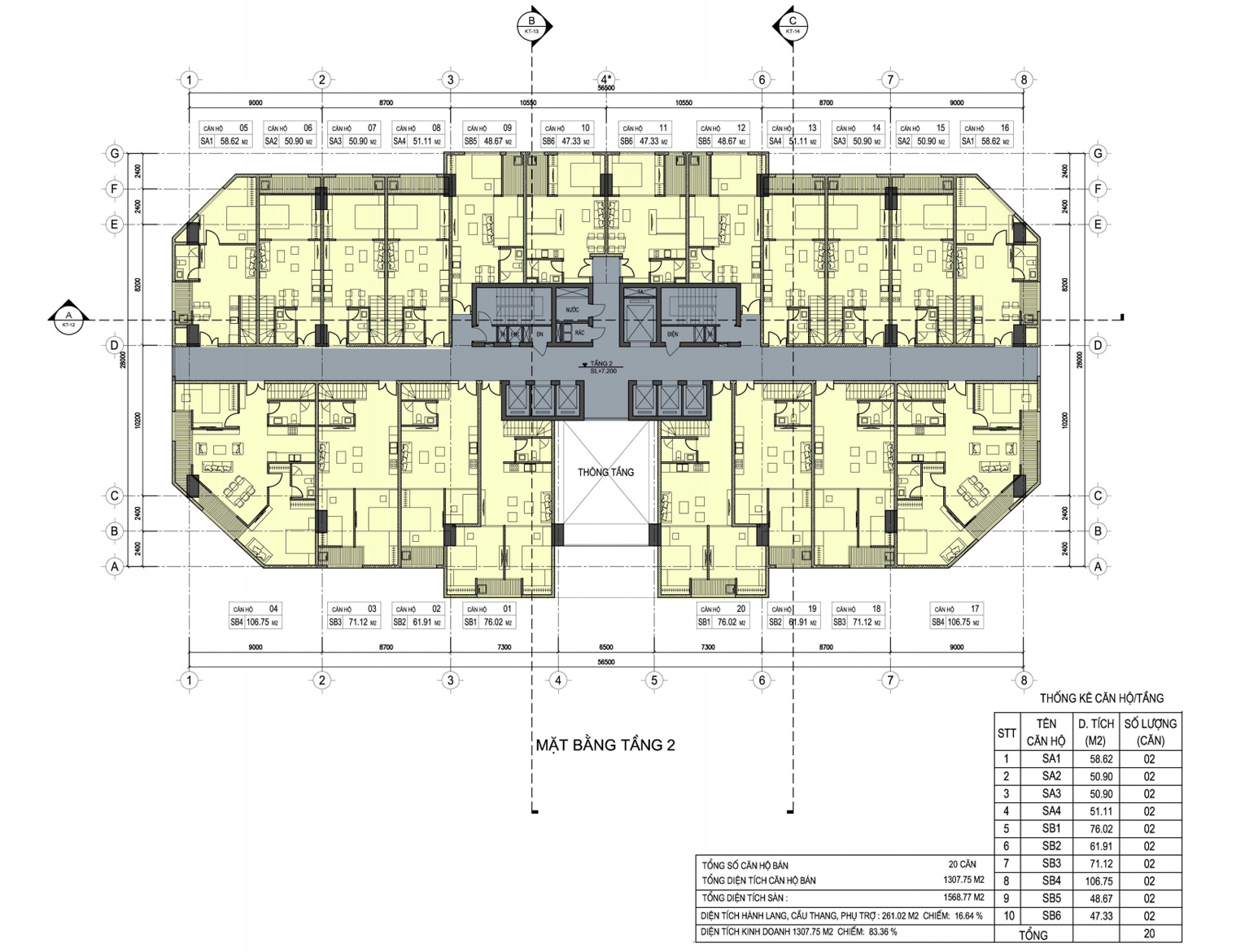 • Tổng diện tích sàn gồm tầng hầm: 56.125 m2