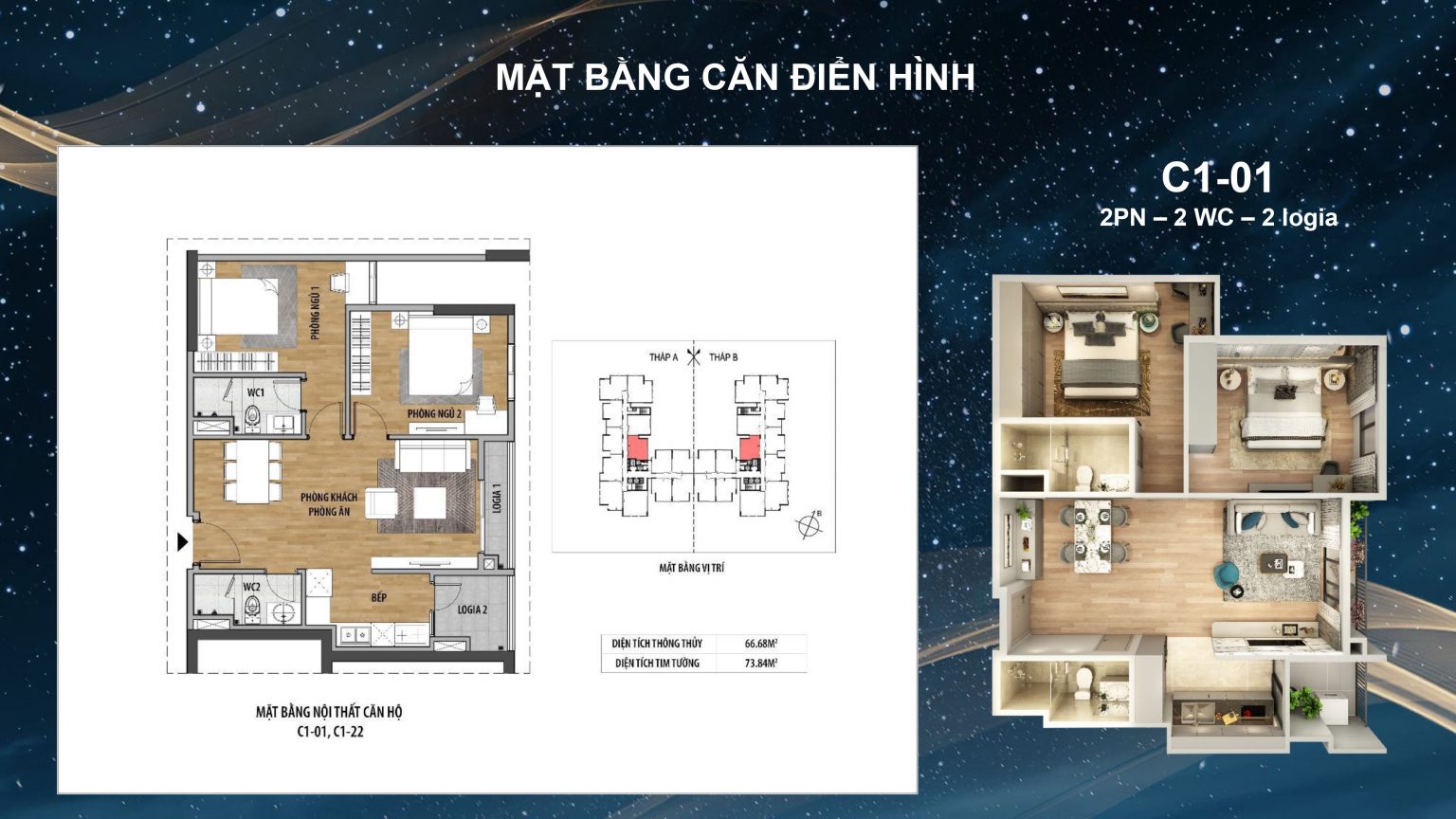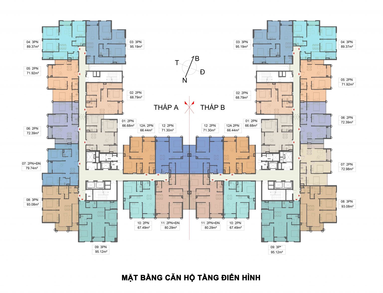 • Diện tích căn hộ: 66.42 m2 – 94.88m2