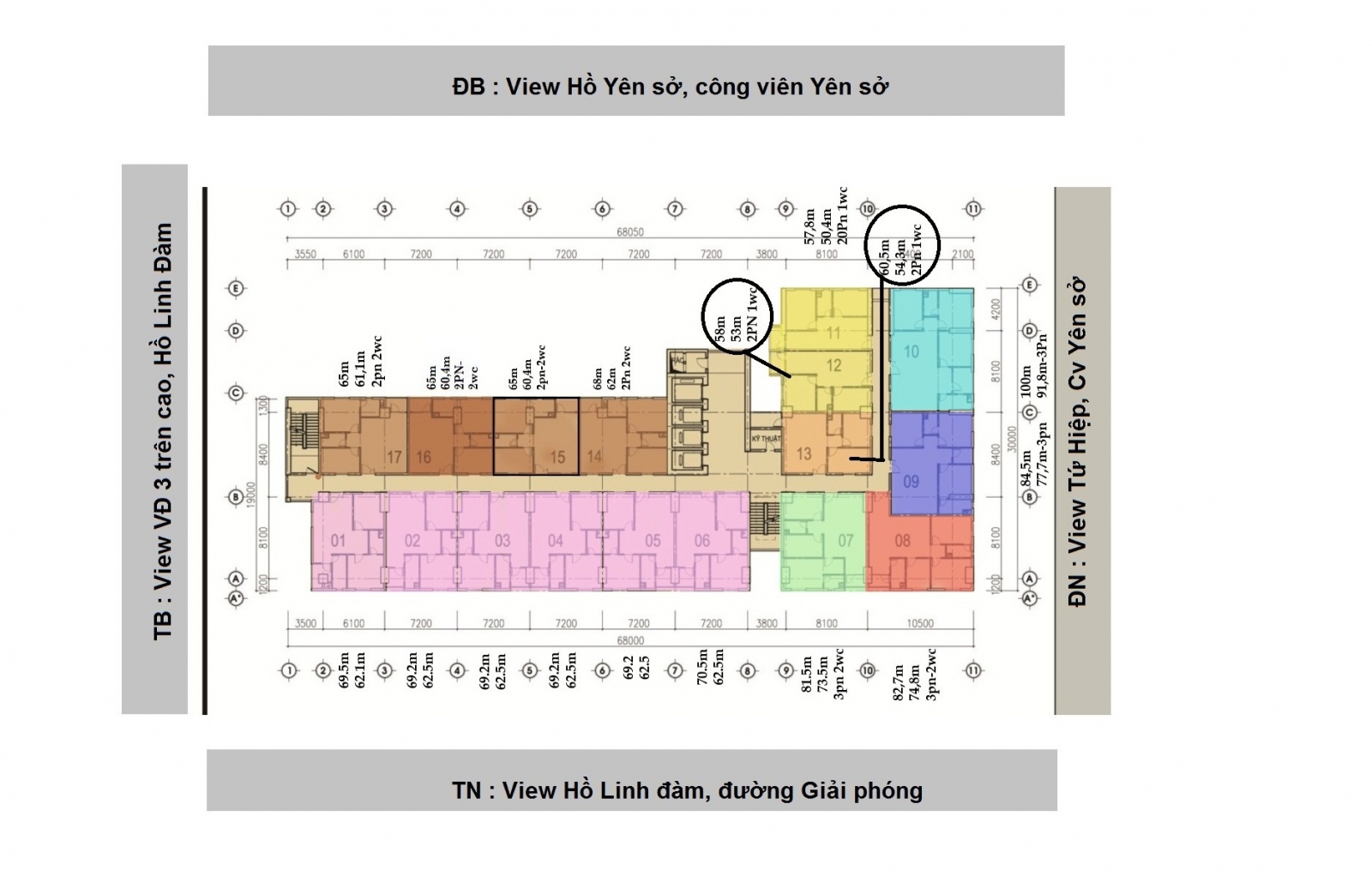 • Diện tích các căn hộ: 65 - 99,2 m2