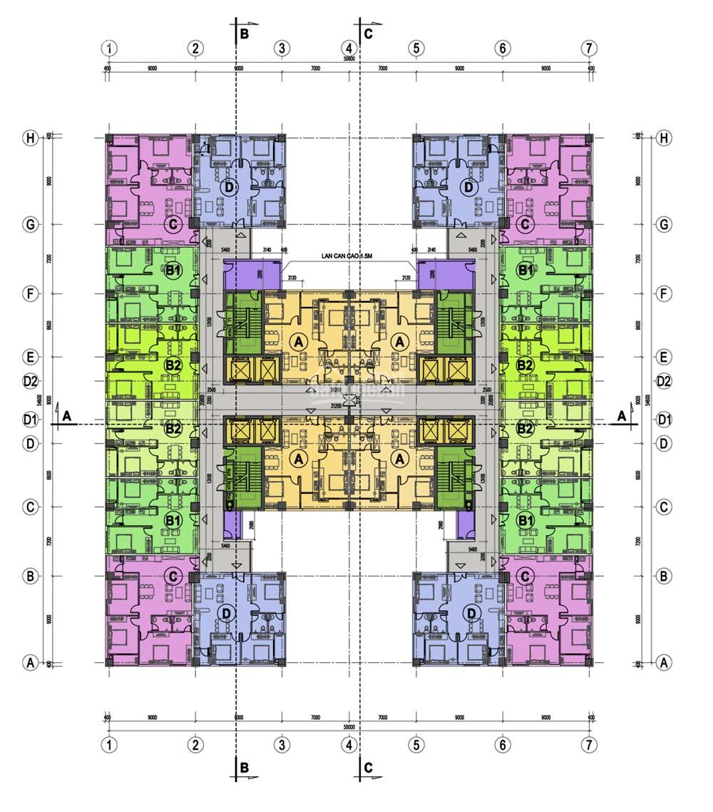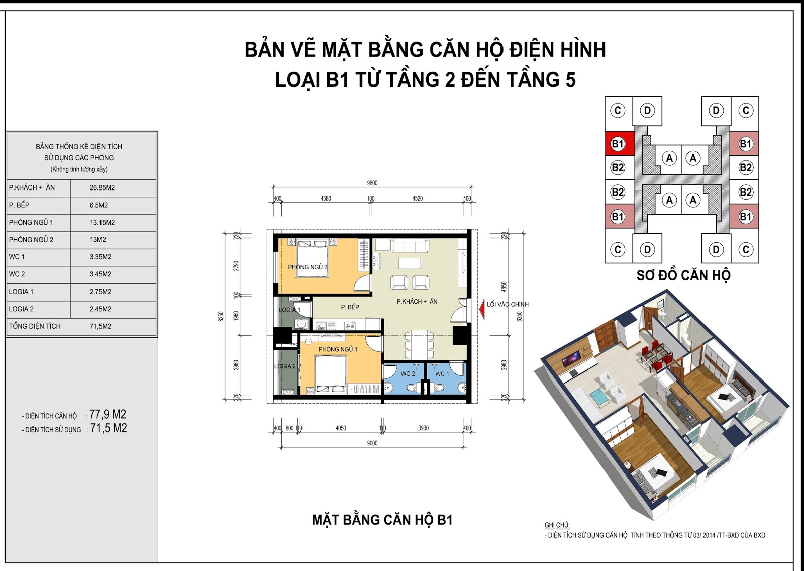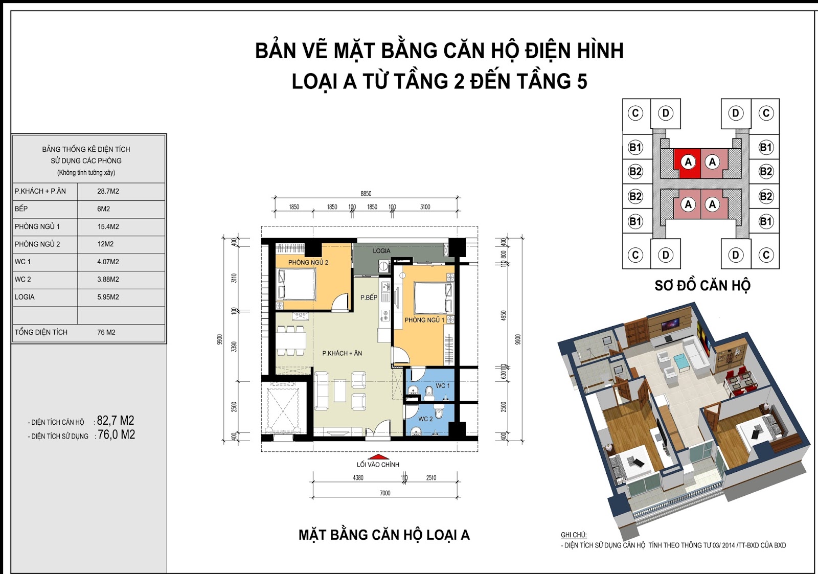 • Diện tích: từ 71m2, 76m2, 88m2 và 99m2