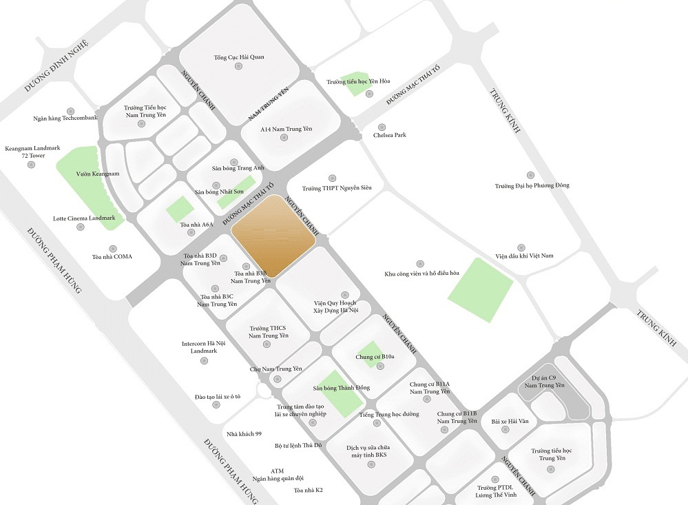- Phía Tây Bắc: giáp đường quy hoạch và khu vực các Tổng công ty.