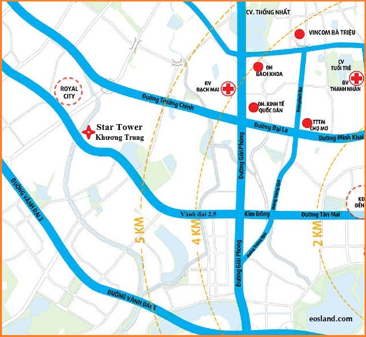 • Chung cư Star Tower tọa lạc tại số 283 Khương Trung, Q.Thanh Xuân, TP. Hà Nội. Đây là một trong những khu vực trong yếu trong quá trình phát triển thủ đô Hà Nội. Dự án chung cư 283 Khương Trung nằm cách đường vanh đai 2,5 quy hoạch 50m. Cư dân chung cư Star Tower Khương Trung không quá khó khăn khi di chuyển ra các trục đường huyết mạch như: Trường Trinh, Nguyễn Trãi, Vành đai 3... cùng với đó là rất gần tuyến đường sắt trên cao Cát Linh - Hà Đông, gần khu đô thị Linh Đàm, Định Công, Royal City, ...