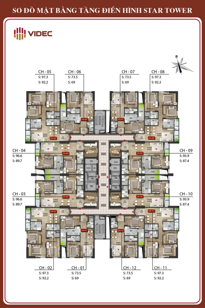 • Diện tích: căn hộ từ 69 - 87,4 - 89,7 - 92,2m2