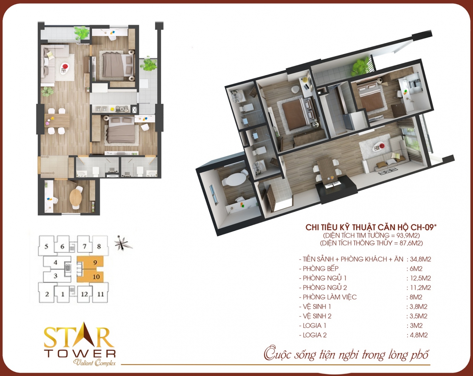 • Với những thiết kế hiện đại, áp dụng các tiêu chuẩn kiểu mẫu cho những căn hộ tại Chung cư Star Tower người mua nhà có thể hoàn toàn yên tâm về không gian sống, việc vận dụng các yếu tố phong thuỷ vào trong từng thiết kế với chủ đạo các căn hộ đều lấy cảm hừng “Chạm tay vào Nắng và Gió” kết hợp tinh tế với thiên nhiên, mang thiên nhiên vào từng căn hộ nhưng vẫn giữ được sự sang trọng và đẳng cấp.