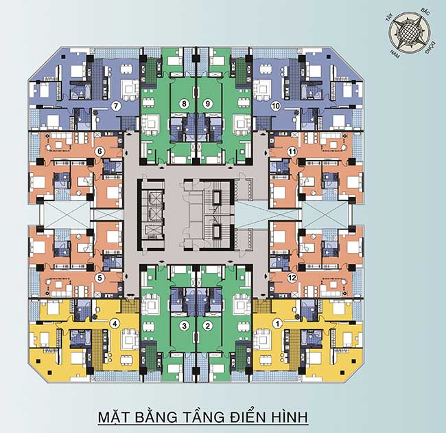 - Tầng 16 - 36 là các căn hộ để ở, thiết kế 12 căn hộ / mặt sàn, bao gồm 3 thang máy riêng biệt