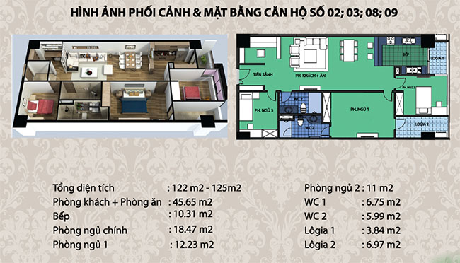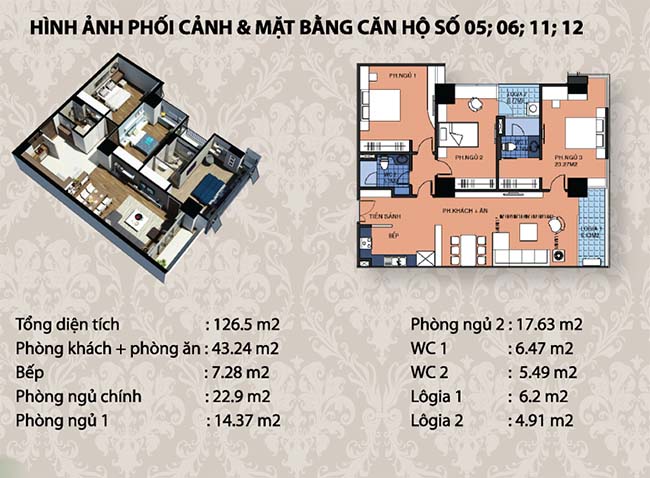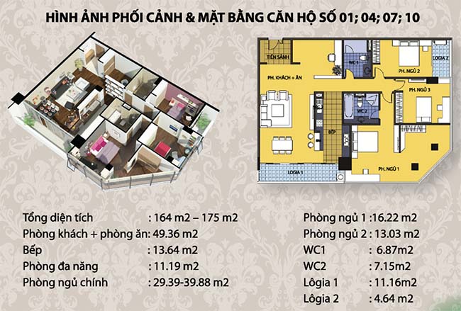 • Diện tích căn hộ: 119m2 - 120,19m2 - 125m2 - 162m2 - 174m2 được thiết kế 2 - 3 phòng ngủ