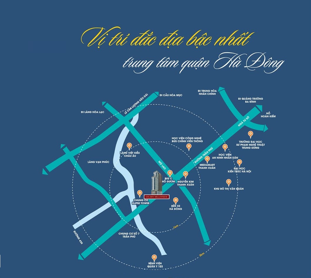 • Cách bệnh viện Hà Đông, bệnh viện 103 khoảng 1,5km, chợ Phùng Khoang, khu trung tâm thương mại Mediamart, Nguyễn Kim, Co.opmart 300m, công viên vườn hoa Hà Đông 300m,.. Gần nhiều trường ĐH lớn như HV An Ninh Nhân Dân, ĐH Kiến Trúc, HV Bưu Chính Viễn Thông, ĐH Hà Nội… bạn có thể hưởng trọn vẹn một không gian sống thoáng đãng với nắng gió tự nhiên cùng với nhịp sống hiện đại tại Gondel Millennium.