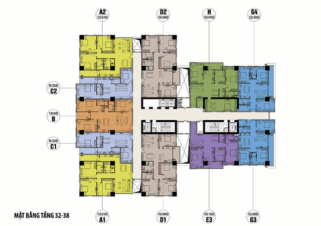 • Diện tích căn hộ linh hoạt: 80 – 166m2.