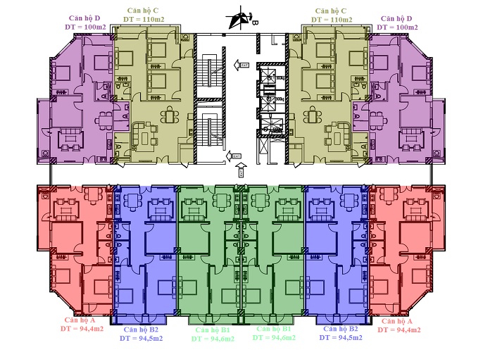 • Diện tích: 94.4m2; 94.5m2; 94.6m2; 100m2: 110m2