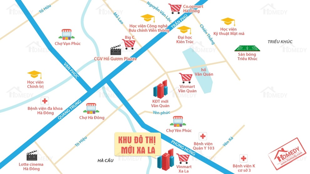 • Bên cạnh dự án là 2 khu đô thị lớn và phát triển bậc nhất Hà Đông là khu đô thị Văn Quán và khu đô thị Mỗ Lao - Làng Việt Kiều Châu Âu dân trí cao, văn minh với cơ sở hạ tầng đầy đủ và sẵn có với: Trường tiểu học, THCS Mỗ Lao, THPT Amsterdam,...