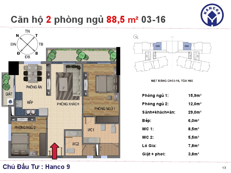 • Chủ đầu tư: Công ty CP Đầu tư Xây dựng số 9 Hà Nội (HANCO 9)