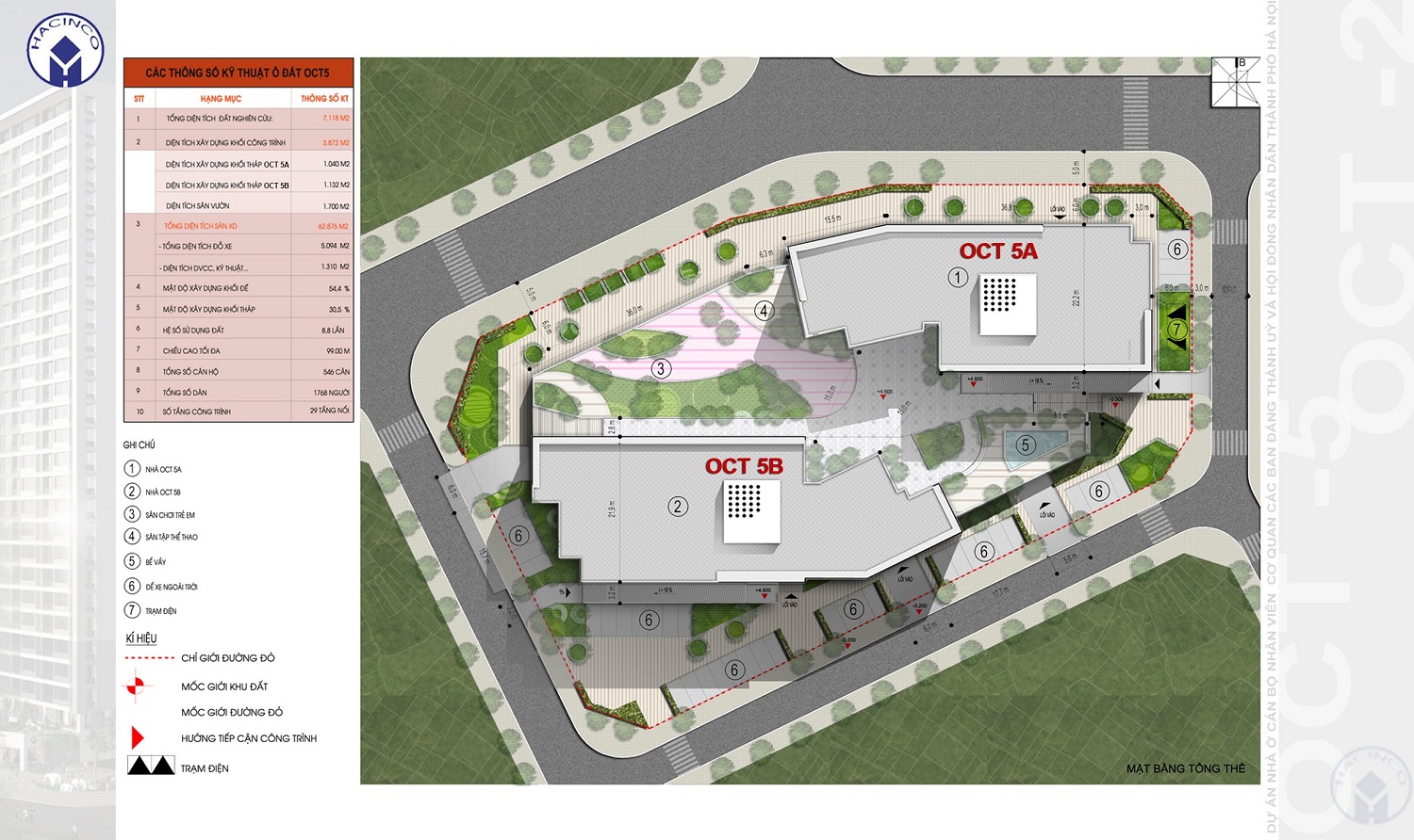 • Diện tích xây dựng khối tháp OCT5A: 1.040m2