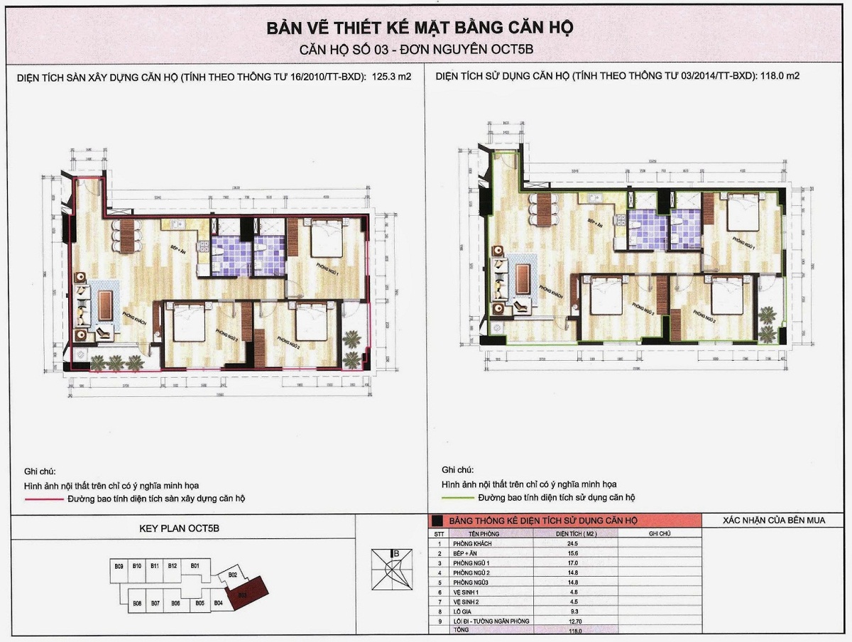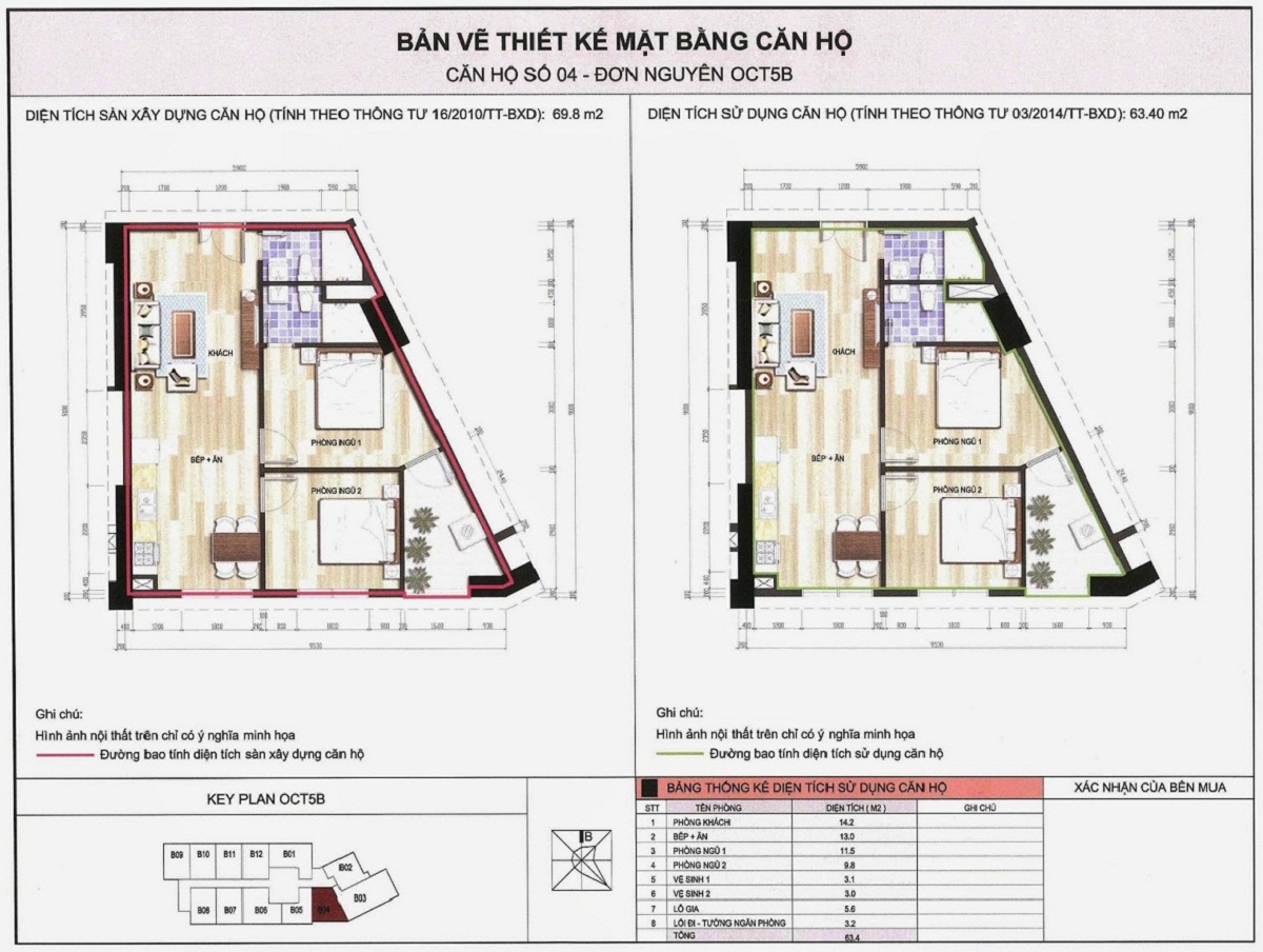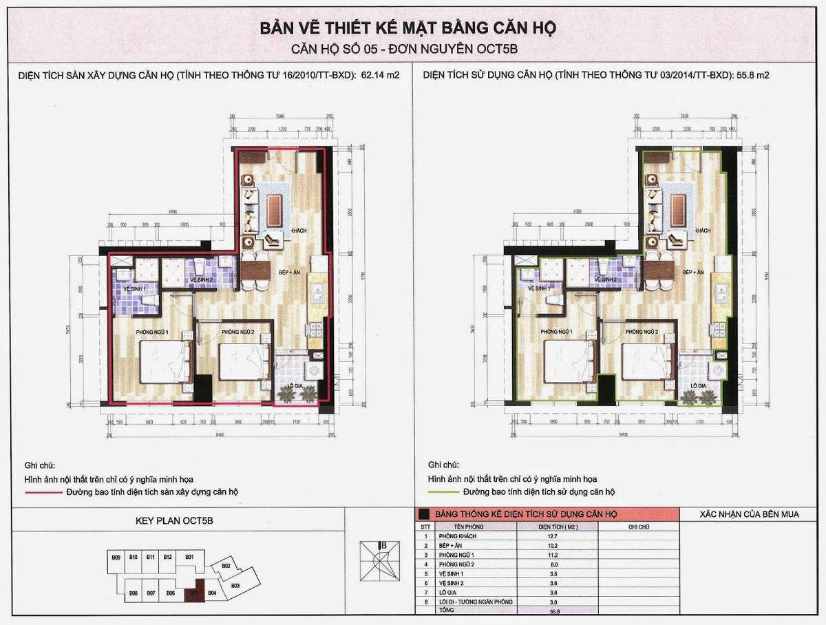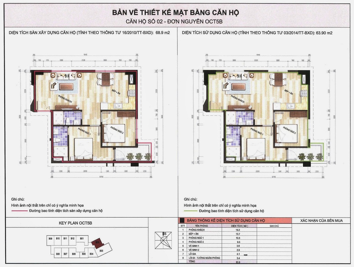 • Diện tích xây dựng khối tháp OCT5B: 1.132m2