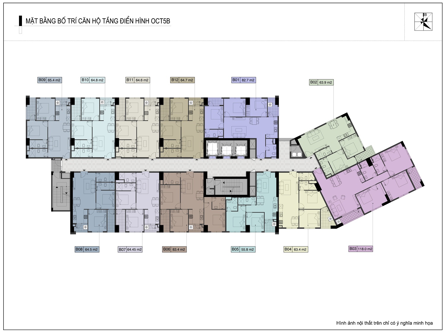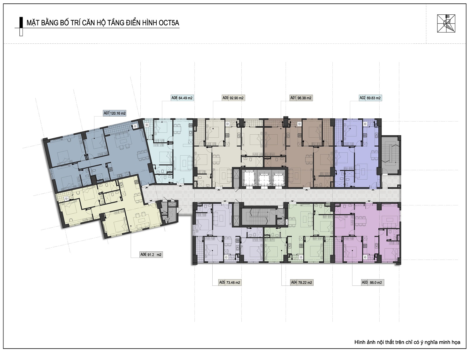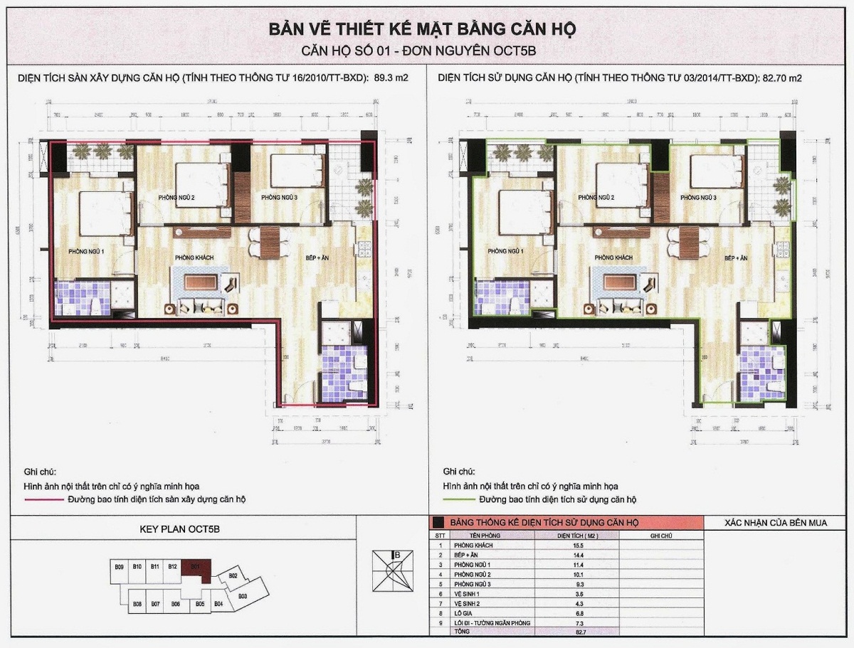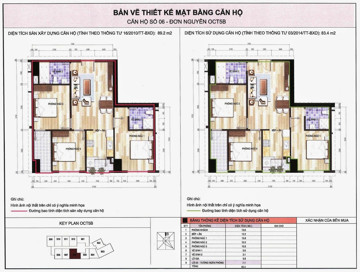 • Diện tích xây dựng khối tháp OCT5B: 1.132m2