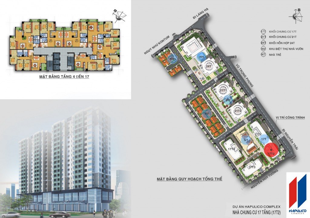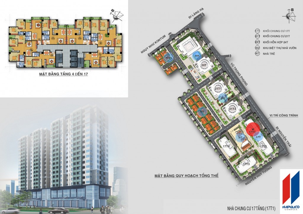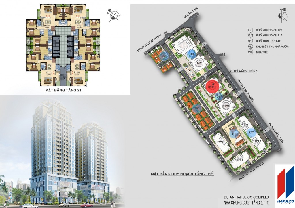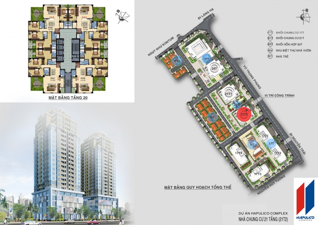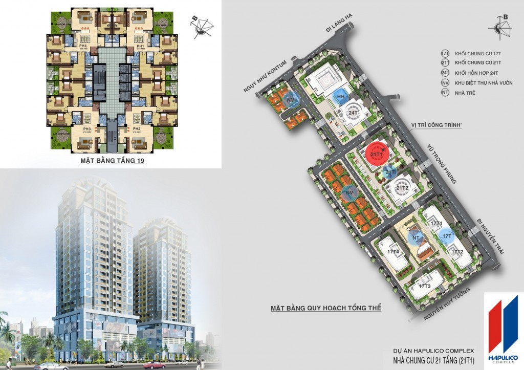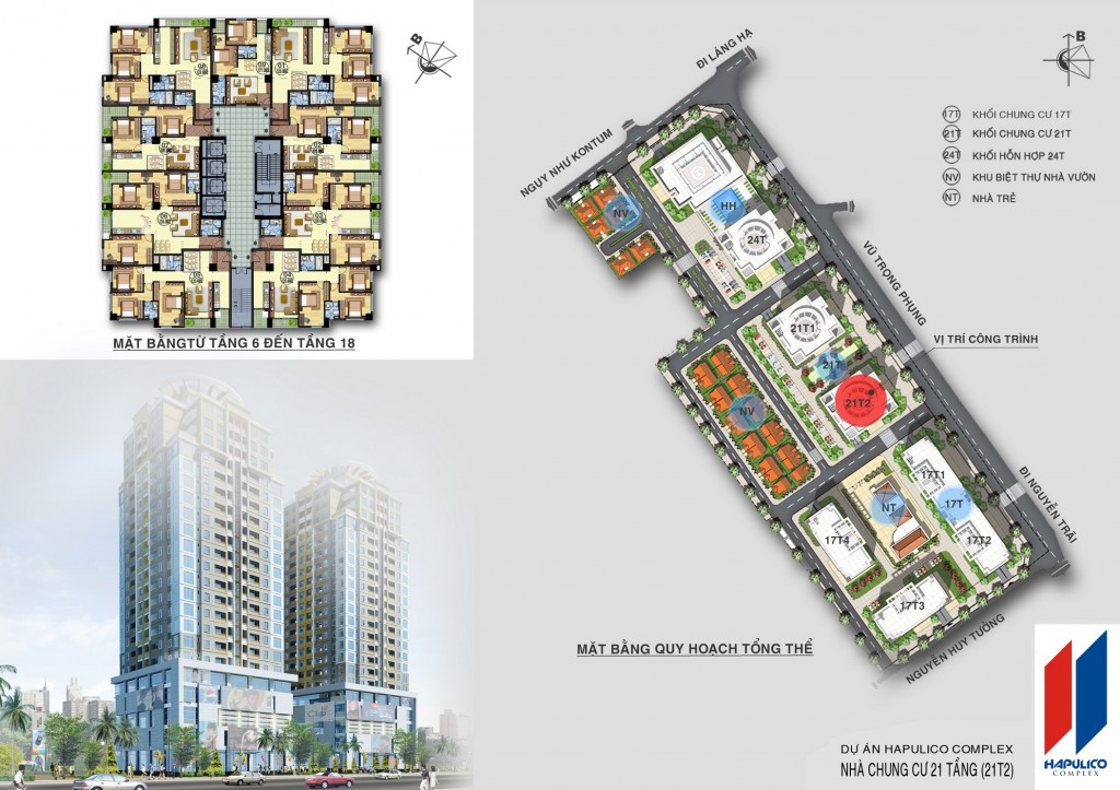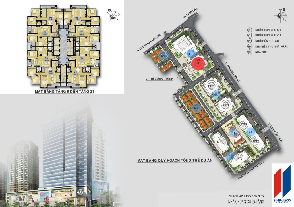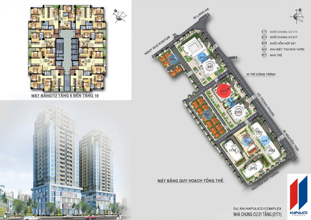 • Hapulico Complex là tổ hợp các công trình khu thương mại, văn phòng, nhà ở cao cấp, nhà trẻ được xây dựng trên tổng diện tích đất 43.333,2m2, được thiết kế gồm 5 khu chính: 4 khối chung cư 17 tầng, 2 khối chung cư 21 tầng, 1 khối văn phòng 24 tầng, 1 khối hỗn hợp thương mại và nhà ở 24 tầng, khu nhà vườn, nhà trẻ, khối khu vực phụ trợ.