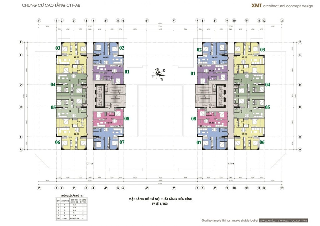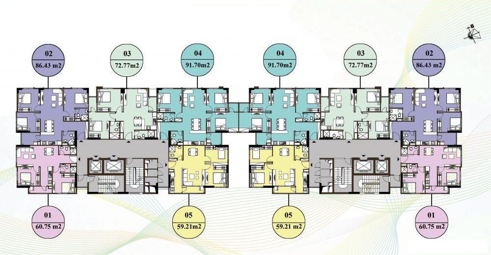 • Diện tích căn hộ: 56m2; 58m2; 64m2; 71m2 và 97m2.