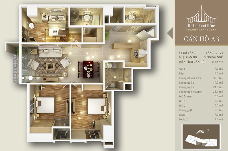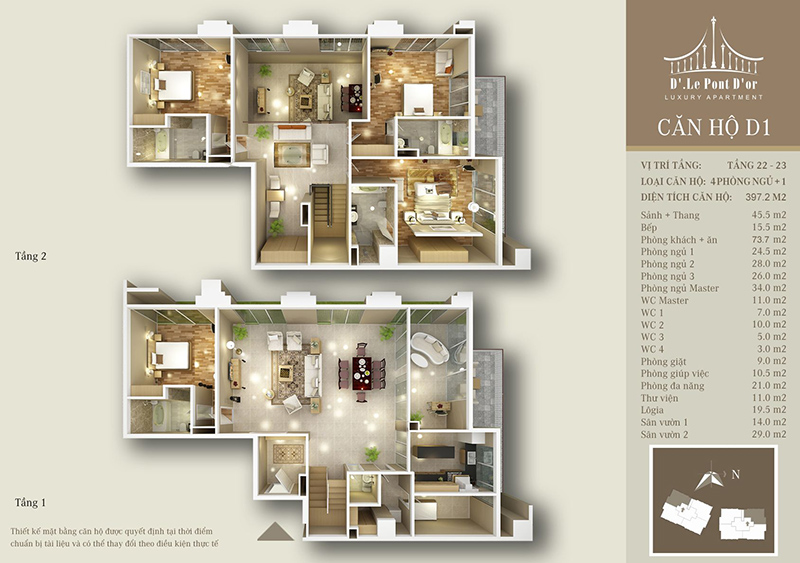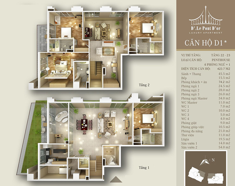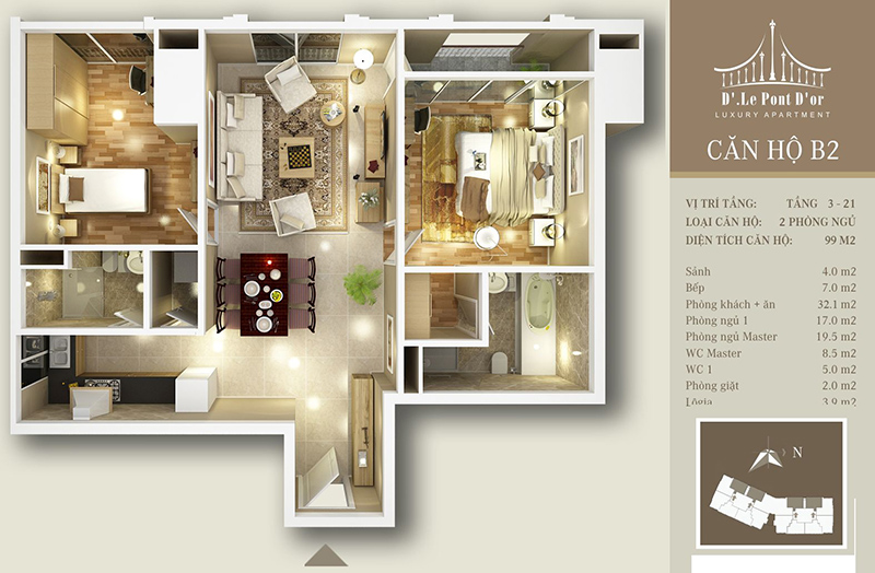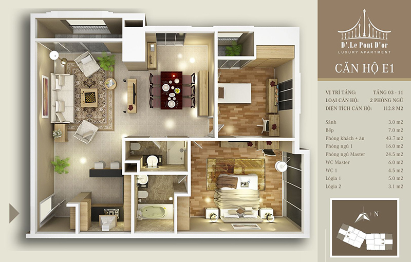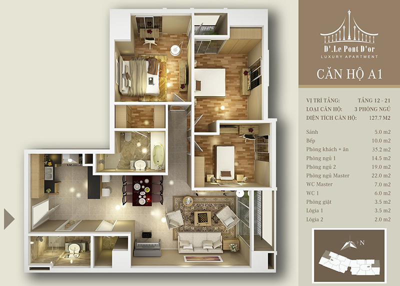 • Với những thiết kế hiện đại, áp dụng các tiêu chuẩn kiểu mẫu cho những căn hộ tại Chung cư D’.Le Pont D’or người mua nhà có thể hoàn toàn yên tâm về không gian sống, việc vận dụng các yếu tố phong thuỷ vào trong từng thiết kế với chủ đạo các căn hộ đều lấy cảm hừng “Chạm tay vào Nắng và Gió” kết hợp tinh tế với thiên nhiên, mang thiên nhiên vào từng căn hộ nhưng vẫn giữ được sự sang trọng và đẳng cấp.
