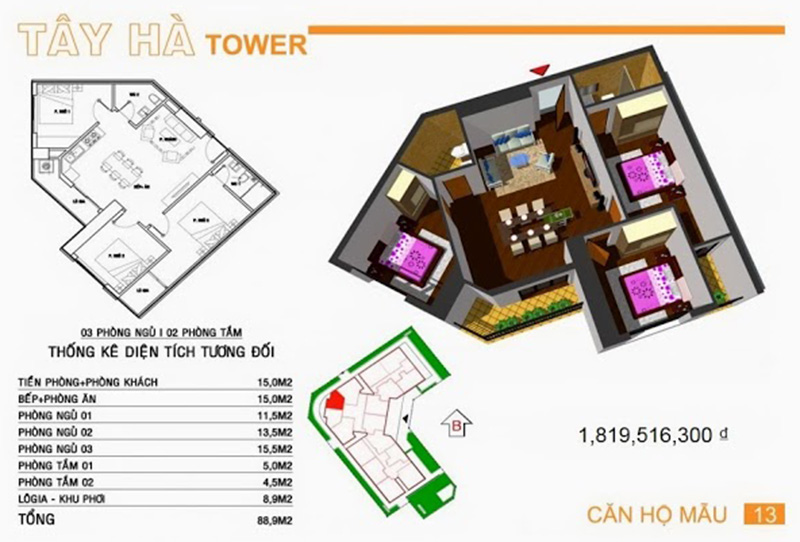 • Tây Hà Tower là dự án nổi bật với những ưu thế về vị trí, thiết kế, tiện ích dành cho cư dân và một không gian sống xanh, trong lành, gần gũi với thiên nhiên. Không chỉ yên tâm về chất lượng công trình cũng như không gian sống lý tưởng, khách hàng chọn mua căn hộ tại Chung cư Tây Hà Tower còn được hưởng giá bán và những chính sách ưu đãi vô cùng hấp dẫn.