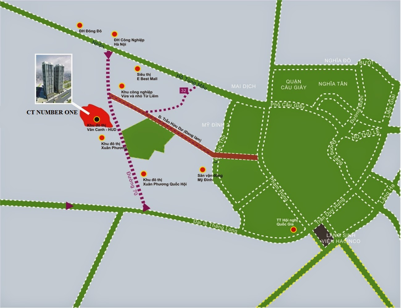 • Chung cư CT Number One là đầu nối với 3 trục đường chính: