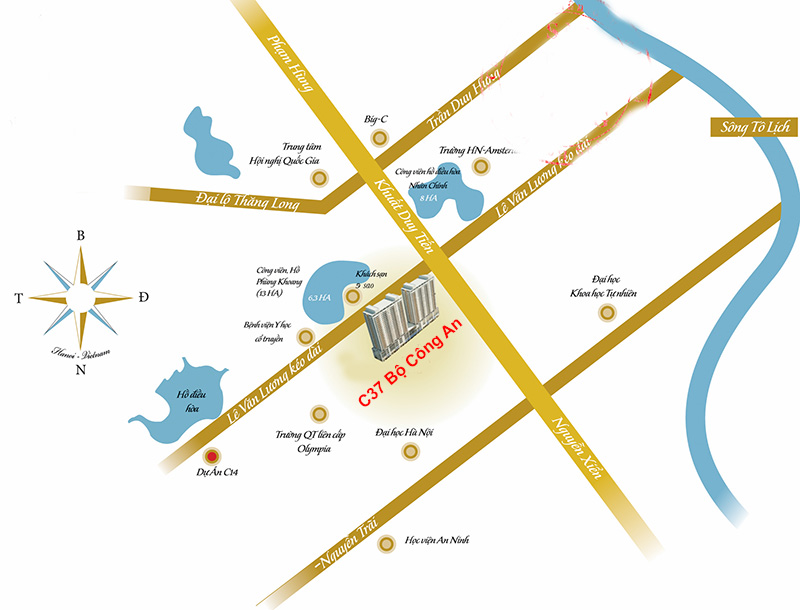 • Dự án Chung cư Bắc Hà Tower - C37 Bộ Công An nằm ngay mặt đường Lê Văn Lương kéo dài, là tuyến đường huyết mạch phát triển trục phía tây của thủ đô Hà Nội