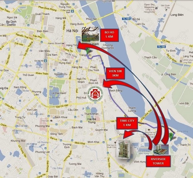 • Riverside Tower cách cầu Thanh Trì khoảng 1km, cách cầu Vĩnh Tuy 2 km về phía Đông Bắc và cách hồ Yên Sở 1km về phía Tây Nam, nằm cách không xa trung tâm Hà Nội (khoảng 6km), có lợi thế về giao thông, hạ tầng cơ sở và không gian sống đẹp, gần sông Hồng và công viên Yên Sở trong quy hoạch sẽ là công viên hiện đại và rộng vào bậc nhất Hà Nội.