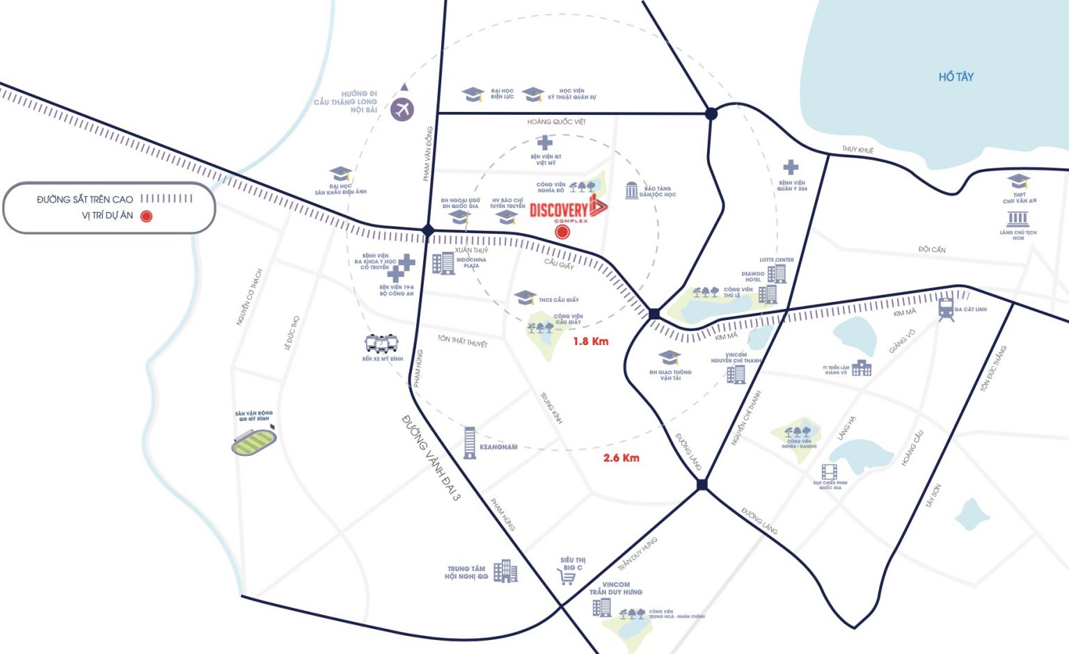 • Discovery Complex tọa lạc tại 302 Cầu Giấy, tiếp giáp với phố Trần Đăng Ninh và phố Chùa Hà, nằm trong vị trí trung tâm của tam giác công viên Yên Hòa, Nghĩa Tân và Thủ Lệ, Discovery Complex sở hữu vị trí đẹp nhất khu vực trung tâm quận Cầu Giấy. Tuyến đường sắt trên không đầu tiên tại Việt Nam kết nối trực tiếp ga số 7 từ nhiều điểm khác nhau trong thành phố đến thẳng tầng 2 trung tâm thương mại của tòa nhà.