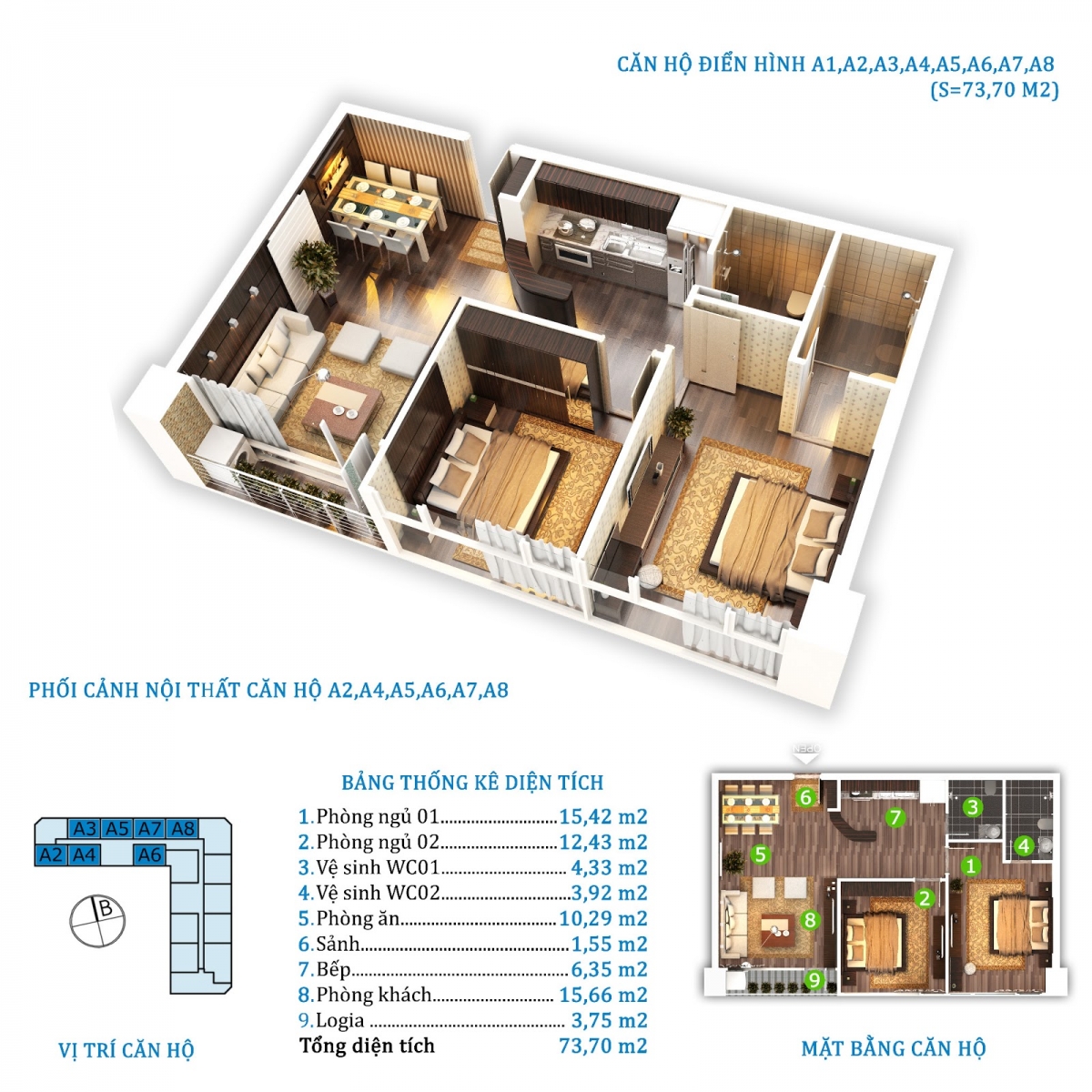 • Diện tích giao thông, cây xanh: 1.366 m2