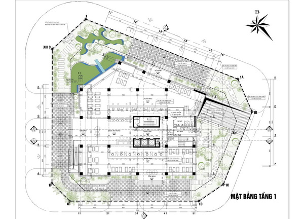 • Diện tích sàn xây dựng: 15.005,9 m2.