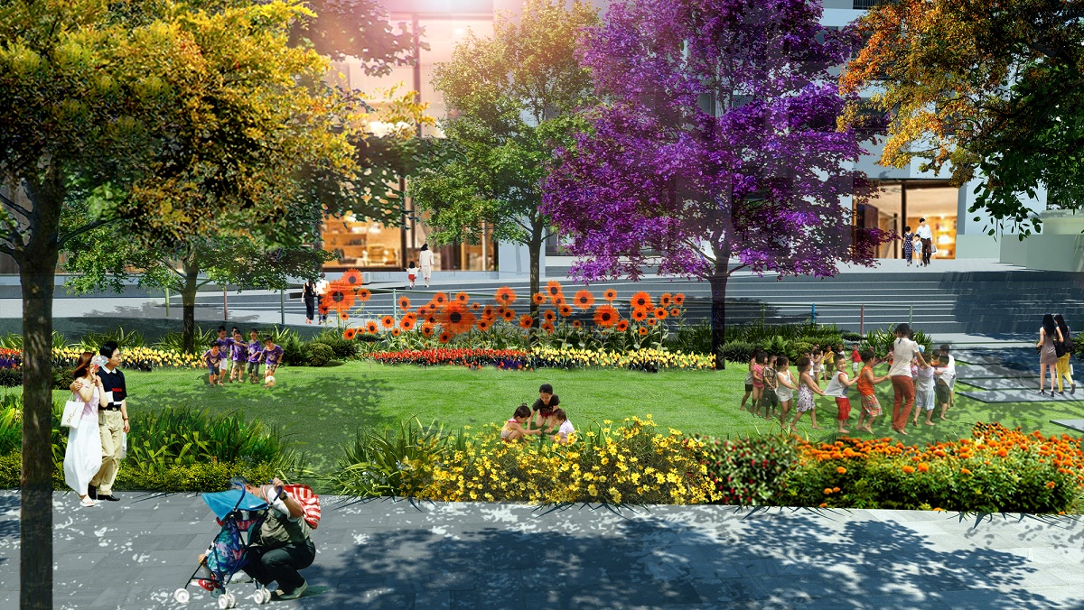 • Với kiến trúc hài hòa giữa thiên nhiên và con người, không gian xanh của đô thị luôn được bố trí đan xen với các khu cộng đồng, căn hộ và trung tâm thương mại. Cây cối, sân vườn, và hồ nước trải dài xuyên suốt trong khu vực. Điểm nhấn đặc biệt này mang đến tổng quan đẹp với tính thẩm mỹ sinh thái cao, tạo môi trường sống trong lành và thanh bình cho những cư dân sống tại Goldmark City. Các tòa nhà được bố trí hài hòa với môi trường cảnh quan xung quanh, hệ thống không gian mở với sự hòa quyện của cây xanh, nắng, gió và không khí tự nhiên trong lành tạo nên một không gian xanh thư giãn lý tưởng. Bao quanh các tòa nhà là vườn hoa, công viên cây xanh, đài phun nước, khu vui chơi trẻ em...