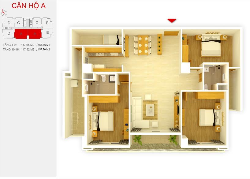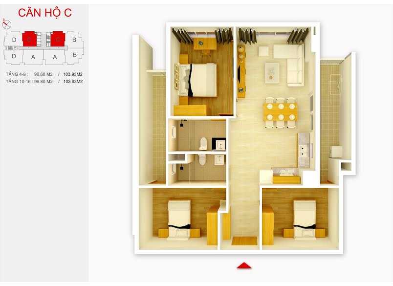 - Tầng 5-17 (Căn hộ điển hình 104 căn hộ)