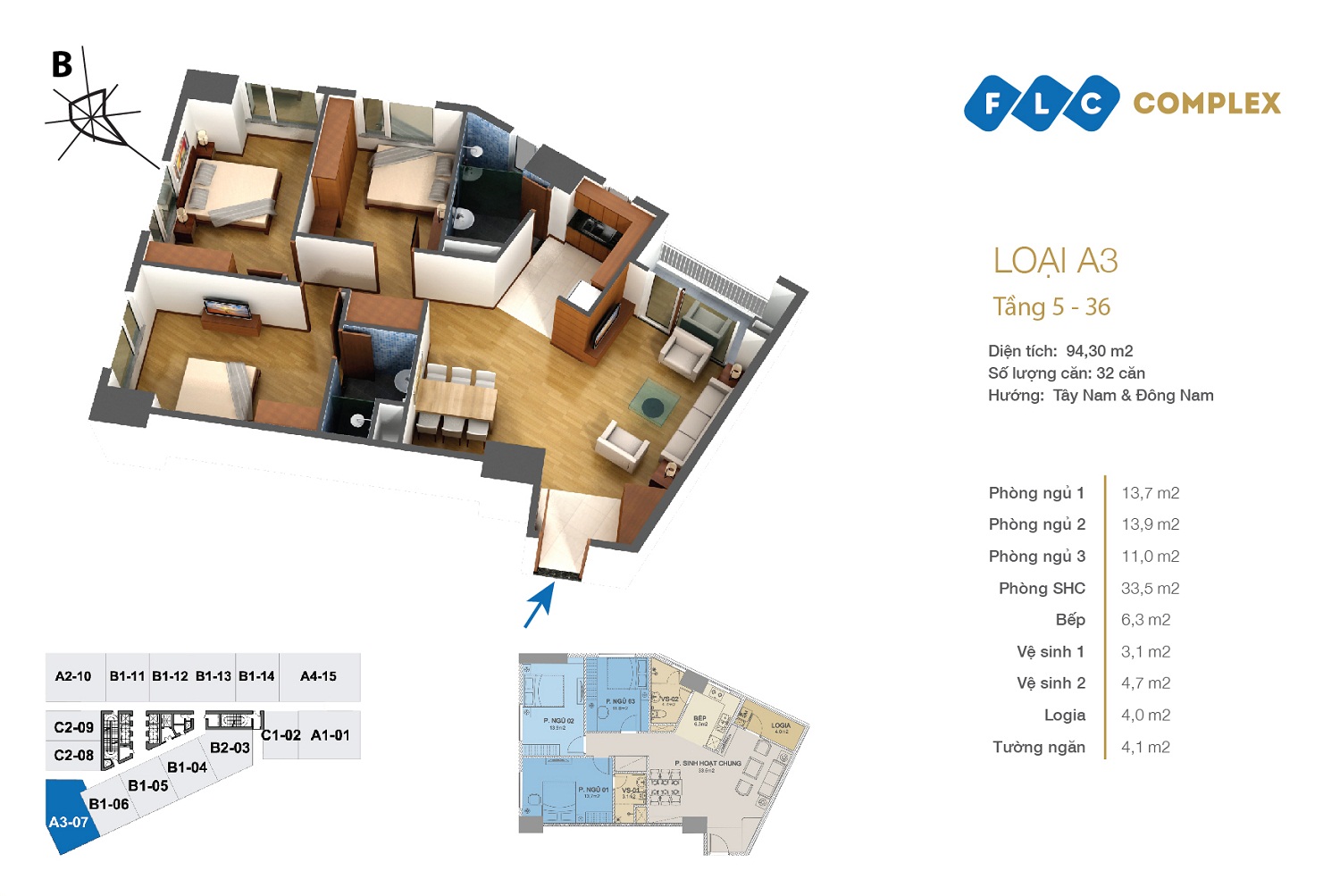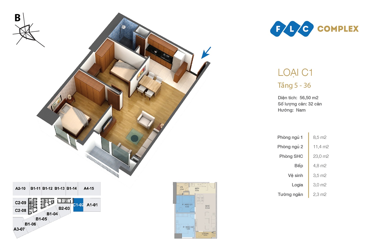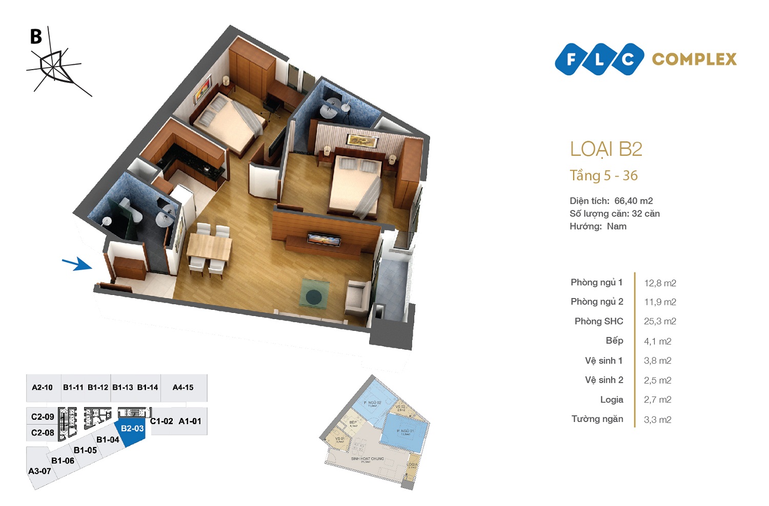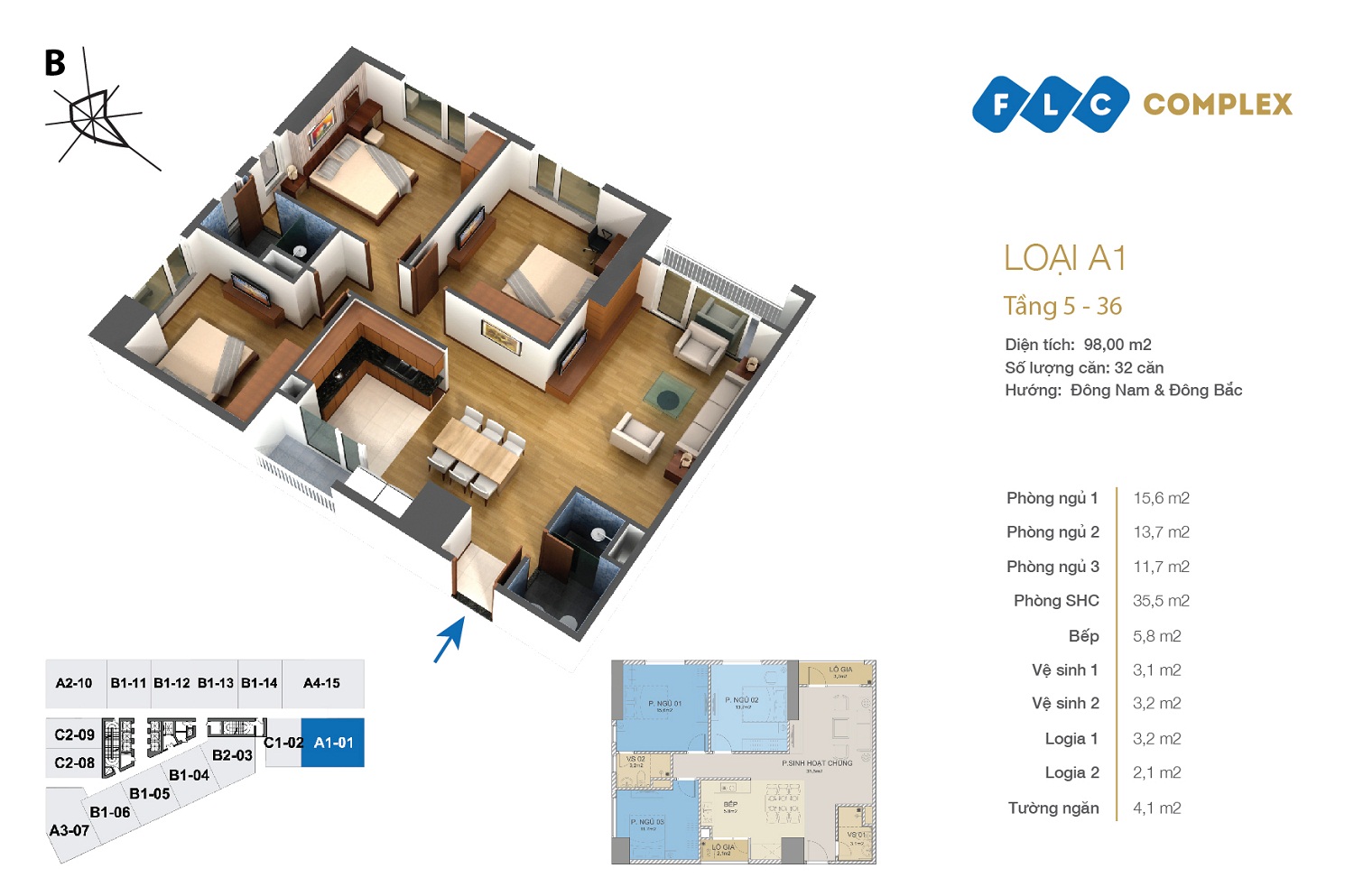 • Mỗi căn hộ tại FLC Complex được thiết kế phổ biến từ 2 - 3 phòng ngủ, được thiết kế ấn tượng cùng với nội thất sang trọng của những thương hiệu nổi tiếng trong nước cũng như nhập ngoại mang đến phong cách sống thượng lưu cho gia chủ. Đặc biệt, với thiết kế căn hộ như vậy sẽ tạo ra không gian sinh hoạt đầm ấm, yêu thương ngập tràn ngôi nhà bạn.