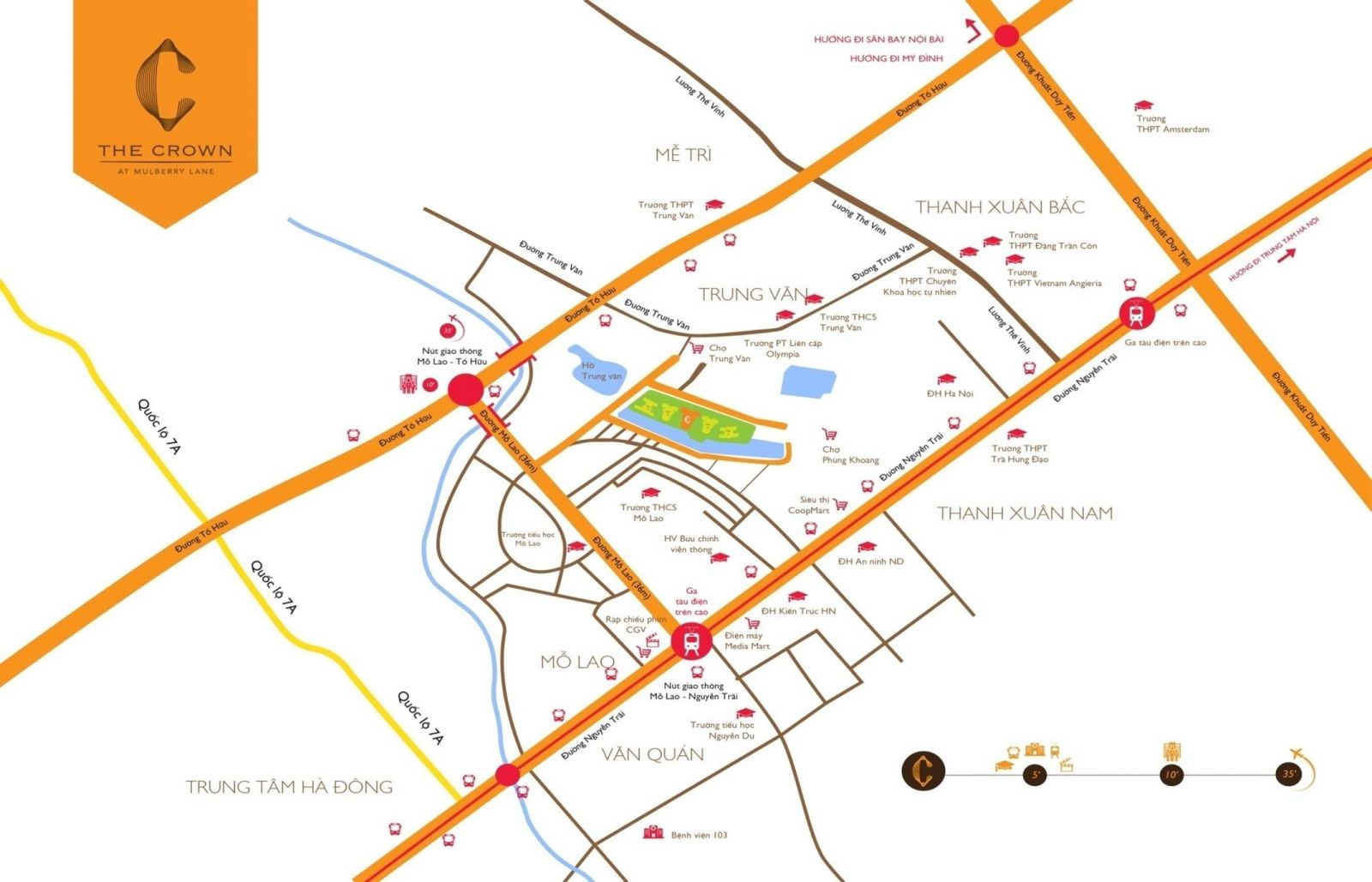 • Tọa lạc ngay tại một vị trí được đánh giá là đẹp nhất tại Hà Đông, xung quanh là hàng loạt các dự án lớn đã được hoàn thiện về cơ sở hạ tầng, đường sá, tiện ích đầy đủ về cuộc sống nên sinh khi sống tại The Crown - Mulberry Lane, cư dân sẽ hoàn toàn được hưởng sự thuận tiện về giao thông cũng như kết nối với các khu vực lân cận bằng những tuyến đường rộng lớn, thông thoáng.