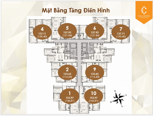 • Loại căn hộ: 123 – 154 m2 (3 – 5 phòng ngủ).