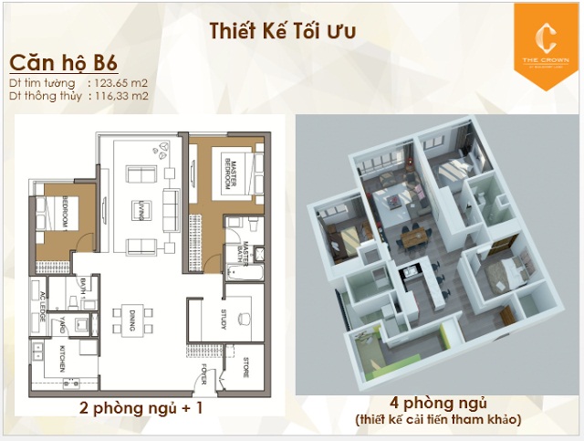 • Với những thiết kế hiện đại, áp dụng các tiêu chuẩn kiểu mẫu cho những căn hộ tại Chung cư The Crown người mua nhà có thể hoàn toàn yên tâm về không gian sống, việc vận dụng các yếu tố phong thuỷ vào trong từng thiết kế với chủ đạo các căn hộ đều lấy cảm hừng “Chạm tay vào Nắng và Gió” kết hợp tinh tế với thiên nhiên, mang thiên nhiên vào từng căn hộ nhưng vẫn giữ được sự sang trọng và đẳng cấp.