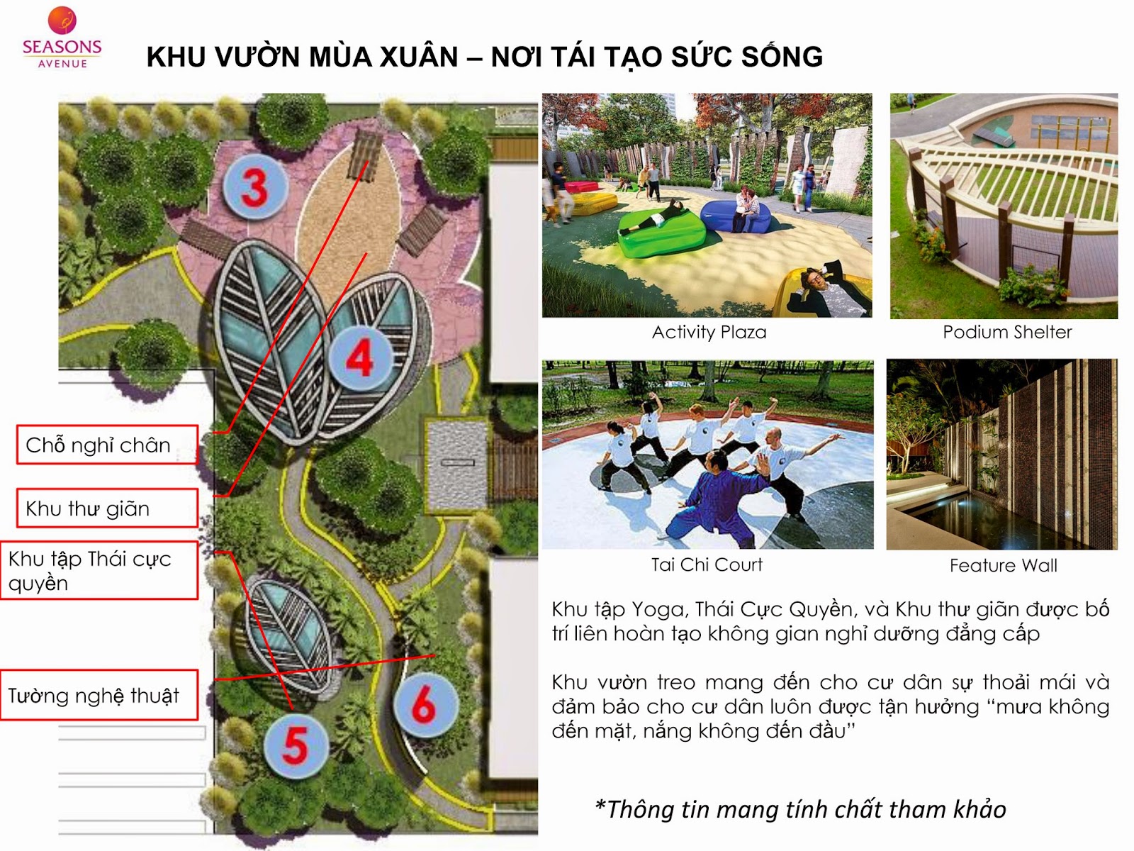• Vườn BBQ trên Bể bơi, Khu tắm massage ngoài trời; Khu nhà kính tổ chức sự kiện; 4 tầng nổi thông liền cả 4 tòa; Liên kết tiện ích bên trong đẹp, tối ưu, tương tự như dự án chung cư Mulberry Lane mà chúng tôi đã xây dựng; Khu đọc sách, cầu thang bộ thiết kế theo phong cách nhiều màu sách, biểu tượng cho 4 mùa.