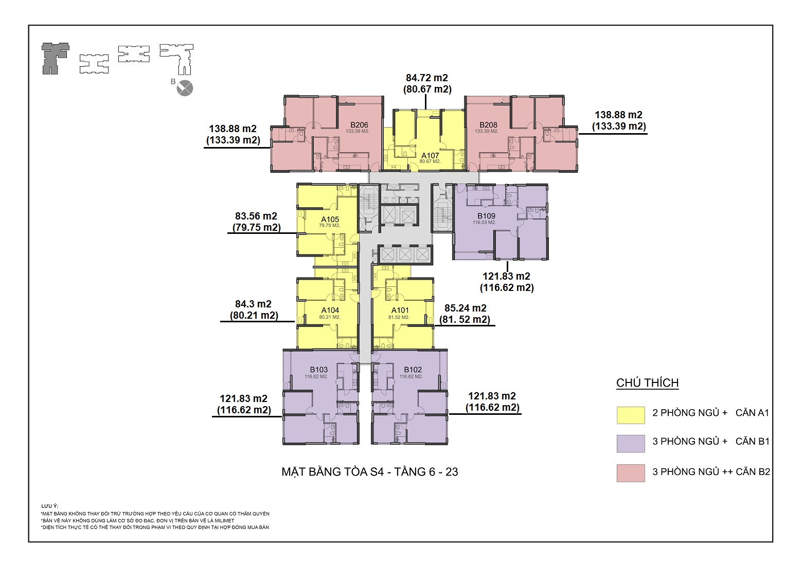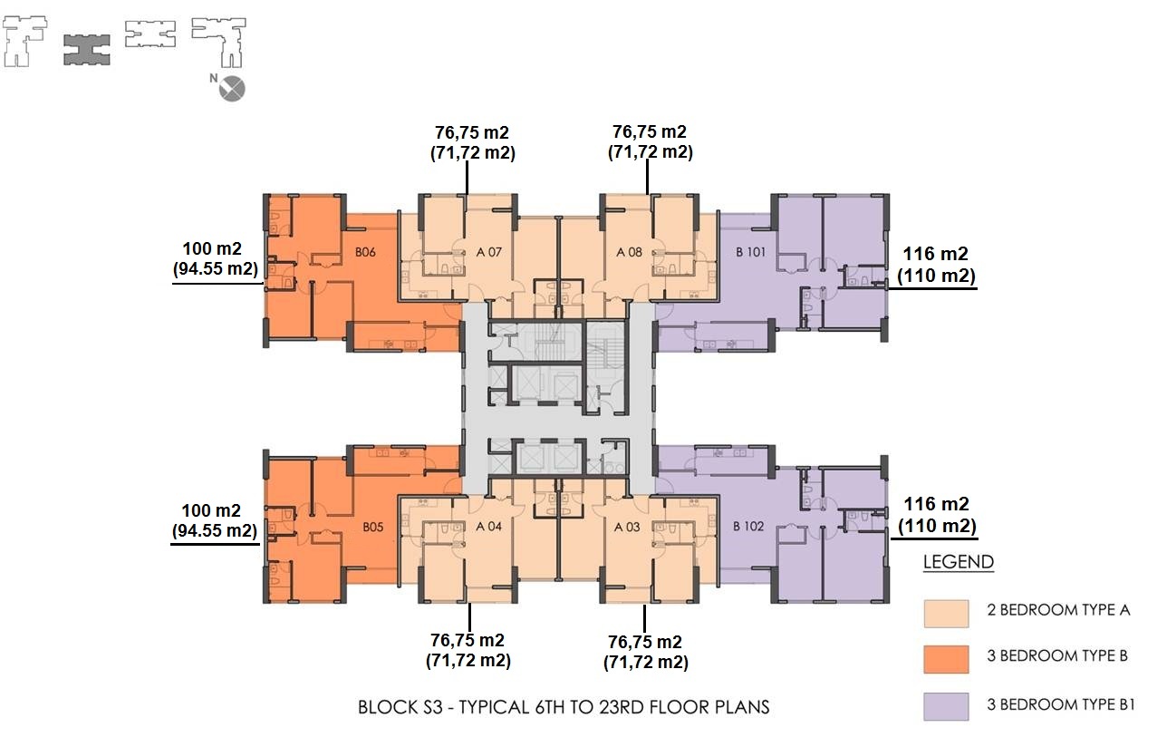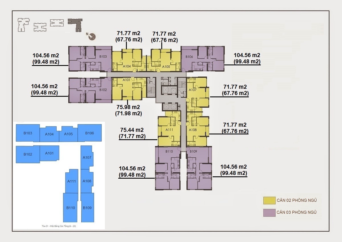• Loại căn hộ: 70 - 105m2 ( căn 2- 3 phòng ngủ ), đều là các căn góc.