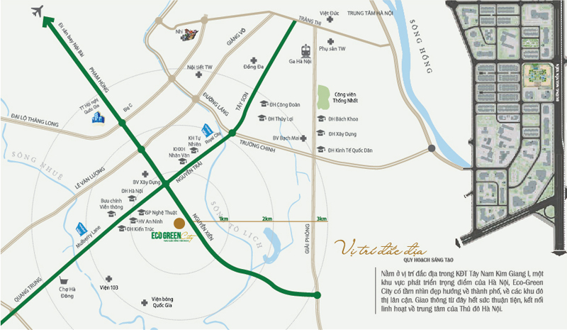 • Chung cư Eco-Green City tọa mặt đường Nguyễn Xiển trên trục đường Vành đai 3 dự án tạo nên một không gian sống đẹp và hài hòa với thiên nhiên. Chung cư Eco Green City cách Ngã tư Nguyễn Trãi, Khuất Duy Tiến 300m, cách Khu đô thị Linh Đàm 1km, cạnh khu đô thị Đại Kim, cạnh dự án Kim Văn Kim Lũ,…