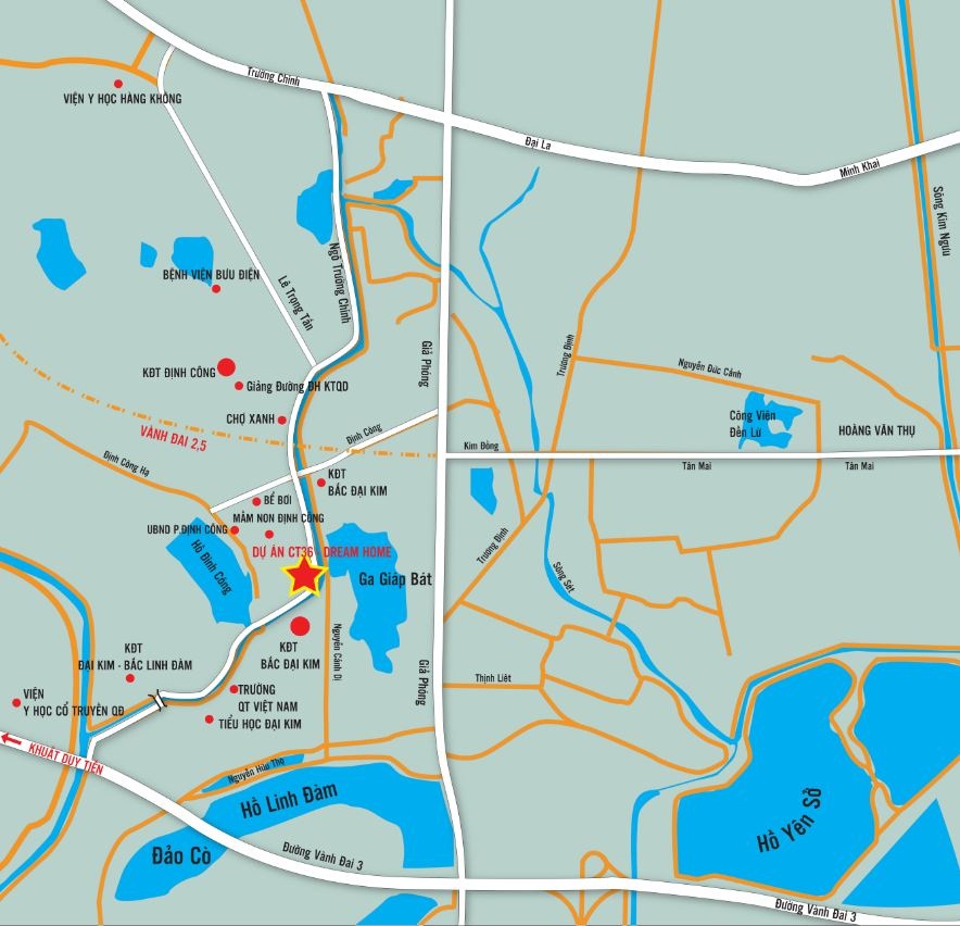 • Dự án chung cư cao cấp CT36 Dream Home - KĐT Định Công tọa lạc tại vị trí đắc địa. Nằm ngay tại vị trí giao thông thuận lợi, kết nối Thanh Xuân, Hoàng Mai, Đống Đa, Cầu Giấy rất thuận tiện; Cách hồ Hoàn Kiếm 5km