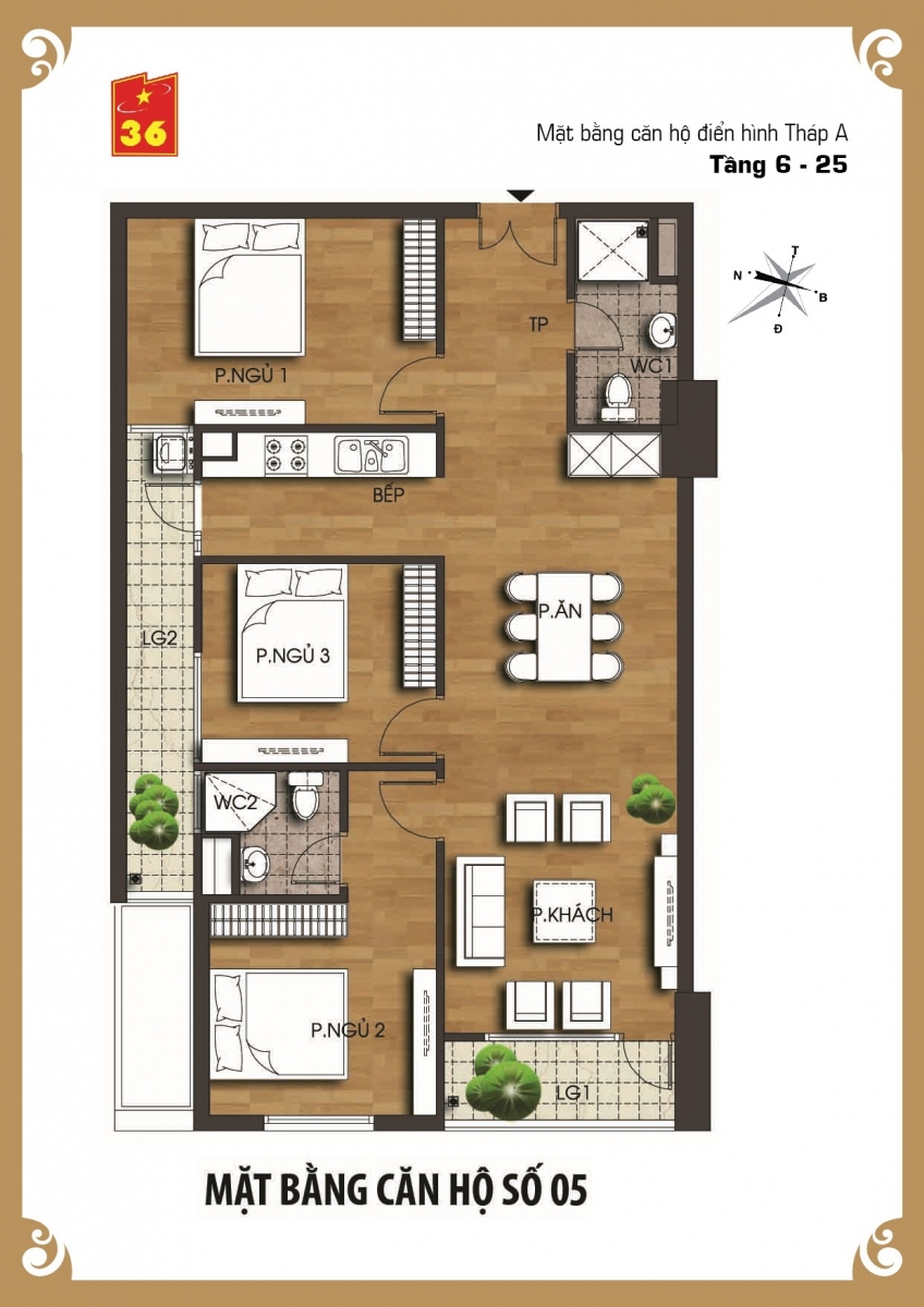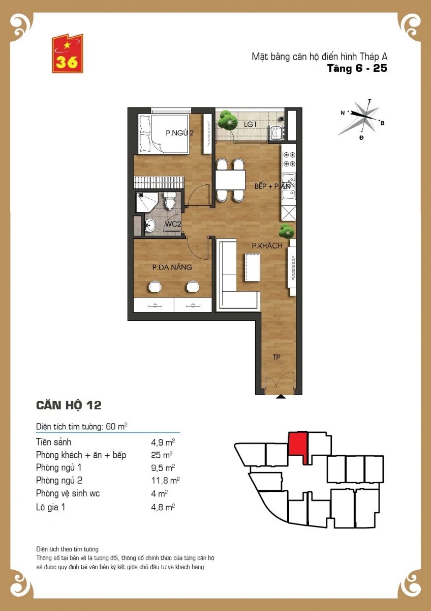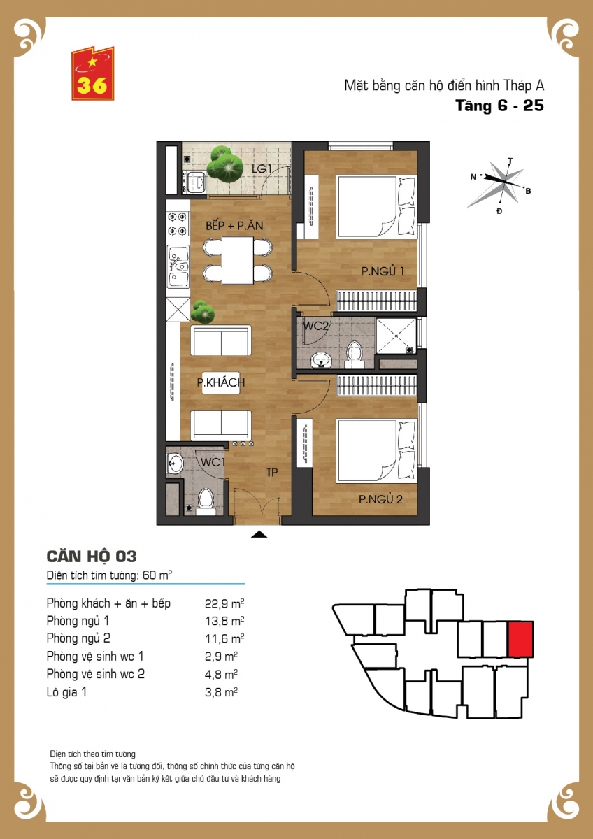 - Từ tầng 5 - 25 là khu căn hộ chung cư