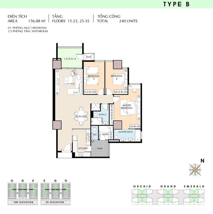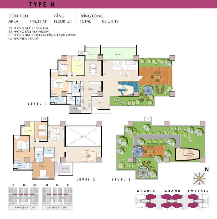 • Quy mô: 3 tòa tháo cao 44 tầng và 02 tầng hầm