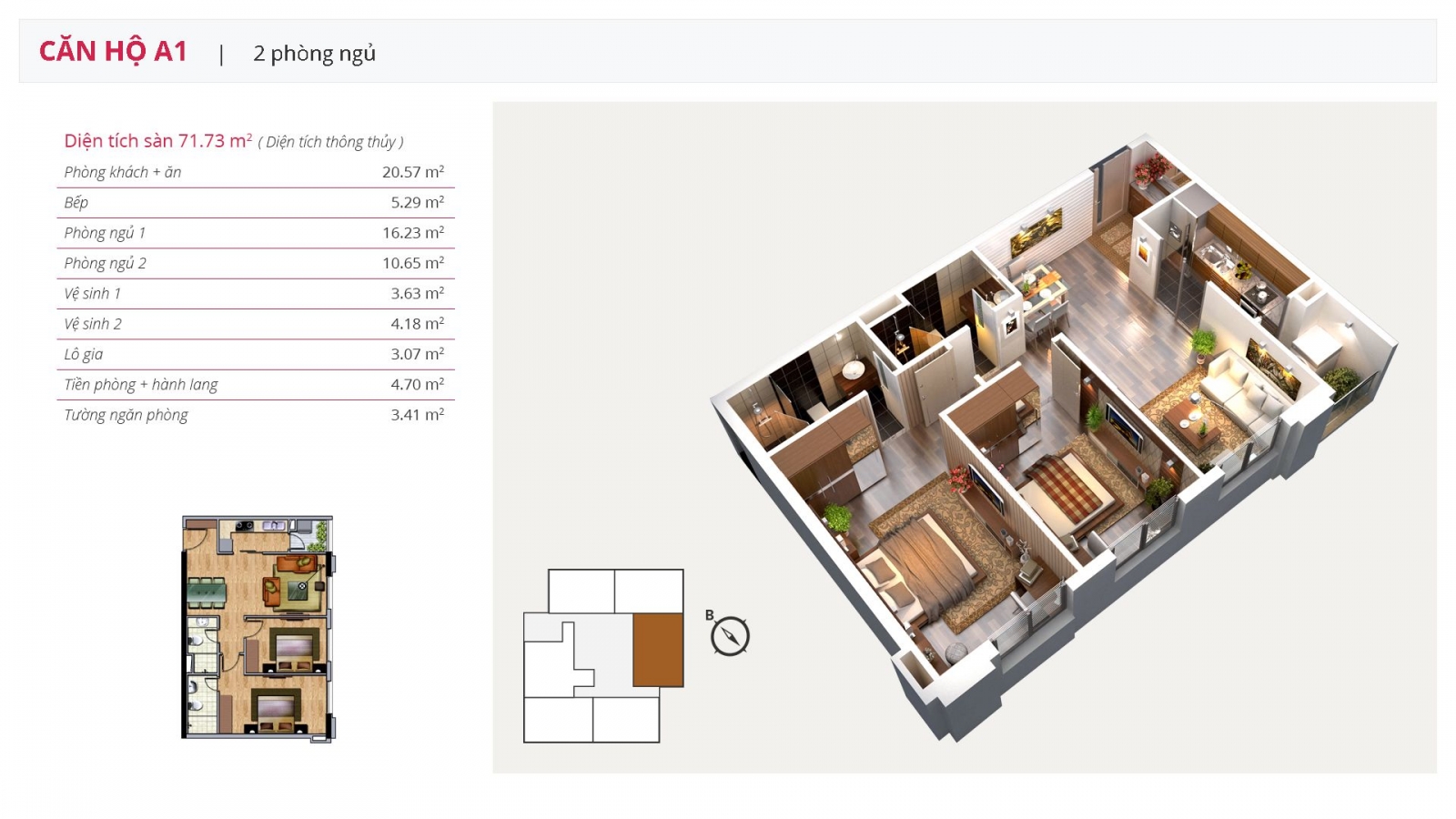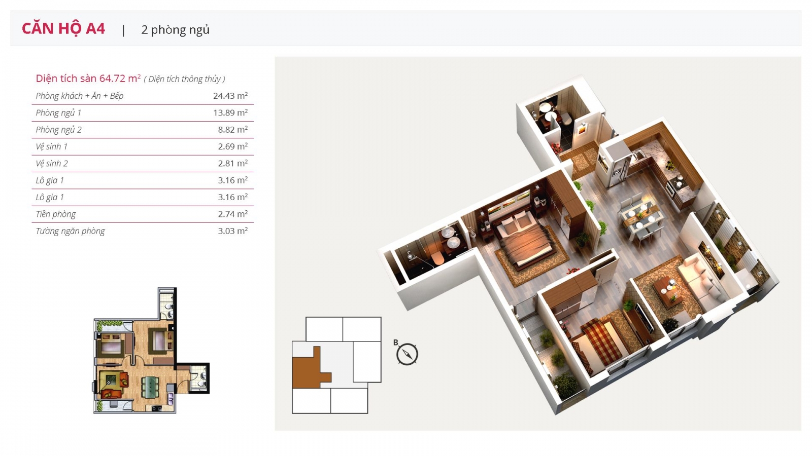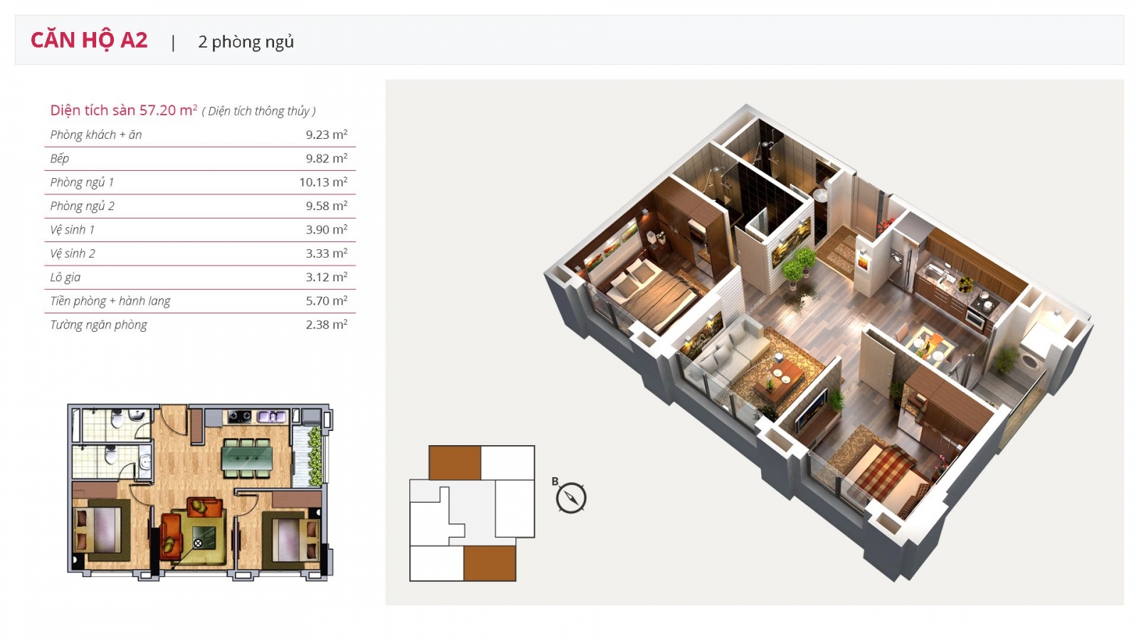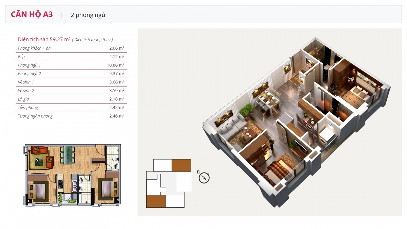 • Diện tích căn hộ: từ 59.27m2 đến 81.6m2
