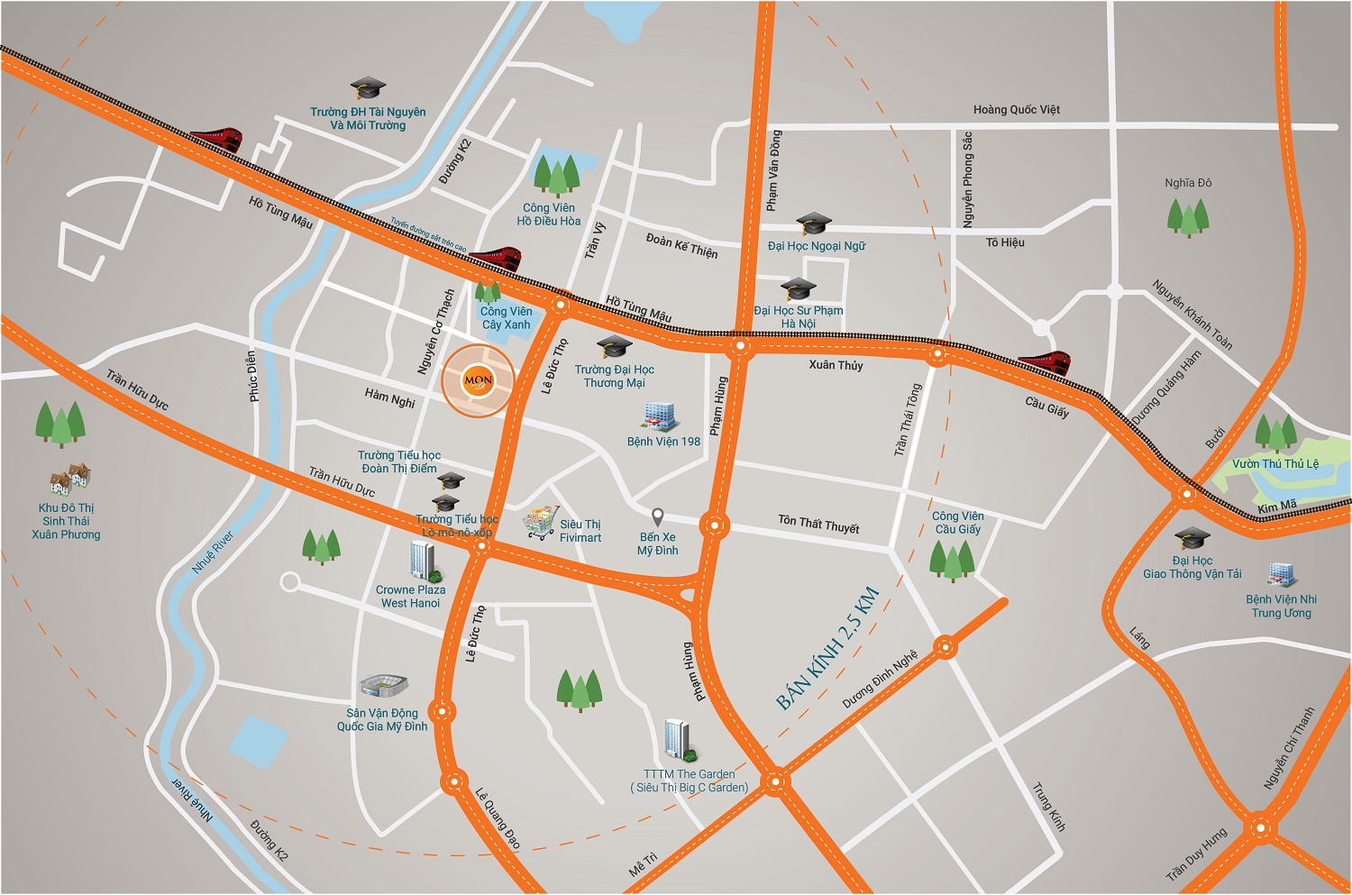 • Gần trung tâm hội nghị Quốc gia, bến xe Mỹ Đình, sân vận động Mỹ Đình (từ dự án bến xe Mỹ Đình 2,5 km, cách sân vận động Mỹ Đình 1 km). Dự án đến bệnh viện 198 chỉ có 2km