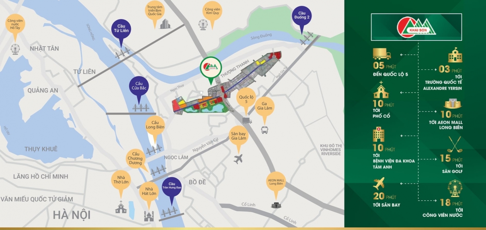 • Sau khi đồ án đô thị sông Hồng được phê duyệt, hai bên bờ sông sẽ “thay da đổi thịt” nhờ diện mạo mới với các trục không gian sinh thái, công trình biểu tượng nhằm đẩy mạnh dịch vụ du lịch, văn hóa, giải trí. Với vị trí đắc địa tại đây, Khai Sơn City sẽ thừa hưởng mọi giá trị sống cao cấp bậc nhất Thủ đô trong tương lai gần.