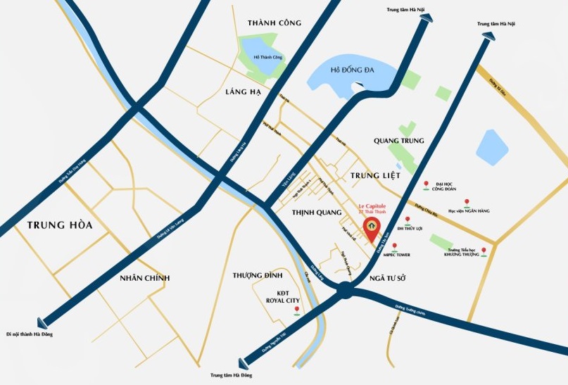 • Sở hữu vị trí đắt giá giữa trung tâm quận Đống Đa, trong bán kính 1km từ dự án quần tụ hàng loạt doanh nghiệp, công ty, văn phòng, khu đô thị lớn như: Lotte Tây Sơn, Khách sạn 5 sao Novotel Tây Sơn, Viet Tower, Vinhomes Royal City, Tòa nhà Toyota Trường Chinh cùng các trường đại học lớn như Ngân hàng, Thủy Lợi, Công đoàn…