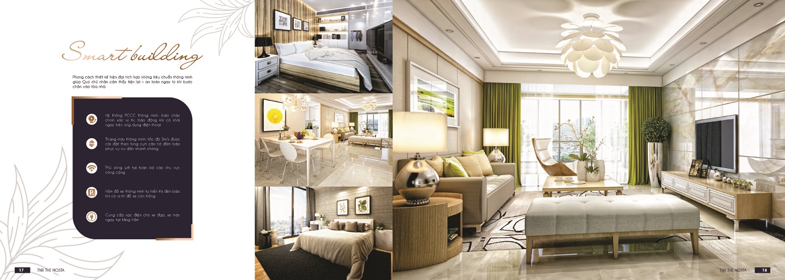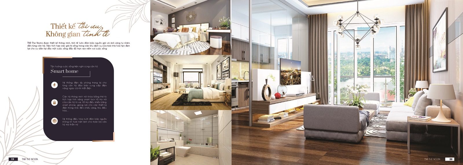 • Với mô hình căn hộ - dịch vụ khách sạn đẳng cấp 5 sao, mỗi căn có từ 1 đến 3 phòng ngủ, diện tích linh hoạt từ 31m2 đến 92m2 đã mang đến cơ hội gia tăng giá trị đầu tư cho khách hàng khi vừa đảm bảo công năng để ở và cho thuê. Trải nghiệm về cuộc sống sang trọng không chỉ đến từ thiết kế đẳng cấp của TNR The Nosta, đây còn là một trong số các dự án tiên phong trên thị trường ứng dụng công nghệ Smart Living - xu hướng "sống thông minh" với những trải nghiệm đầy mới mẻ đang dần được TNR The Nosta hiện thực hóa.